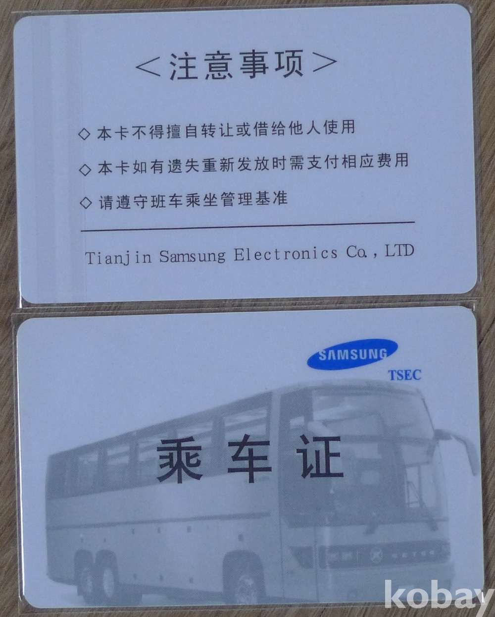 텐진 삼성전자 직원 한정 출,퇴근 이용 가능한 버스 카드
