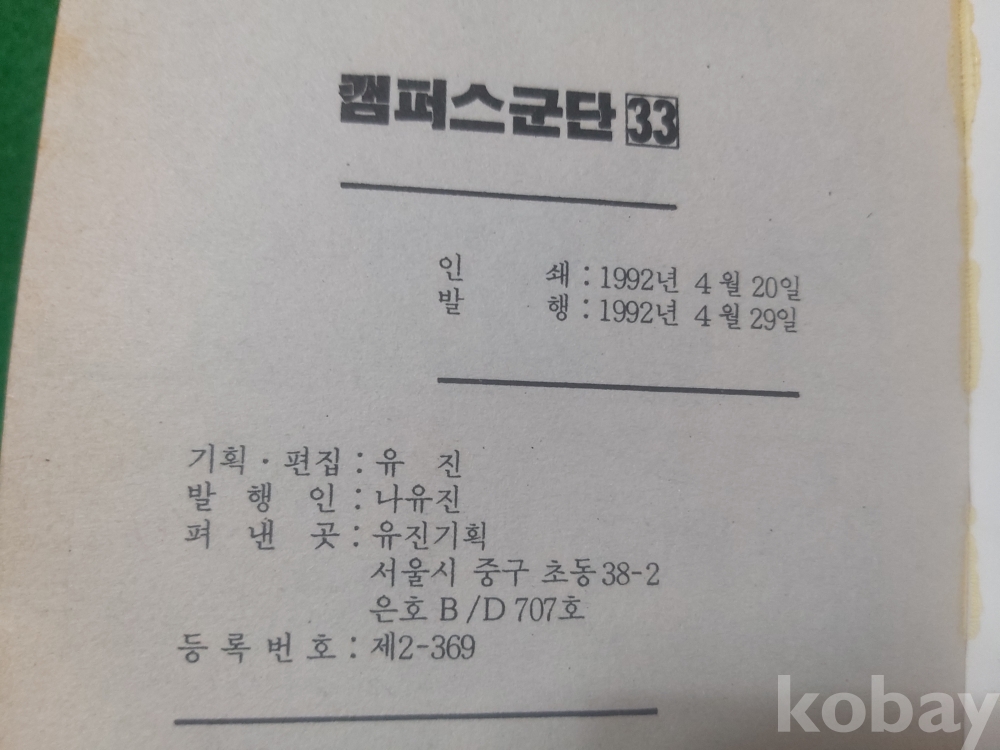 만화 / 청소년만화 - 캠퍼스군단 - 1992년 제33호