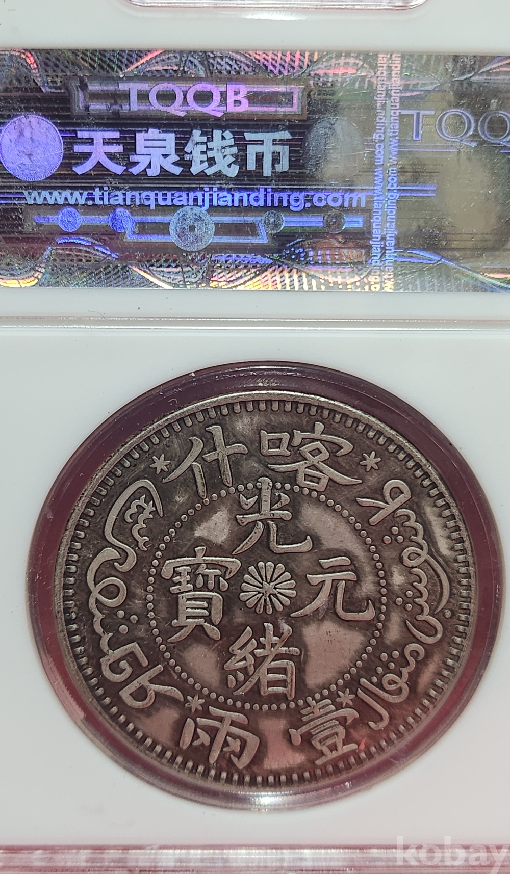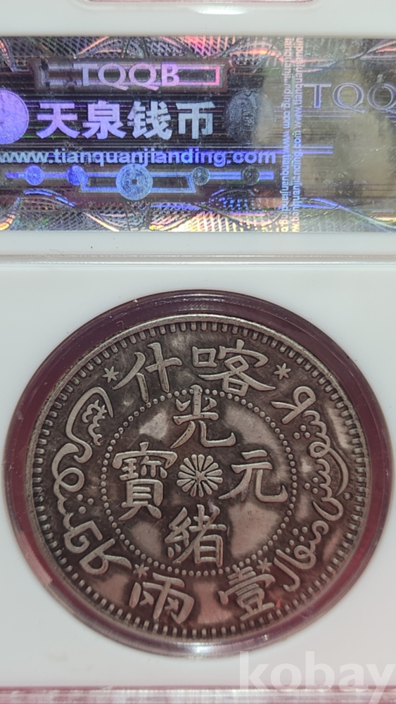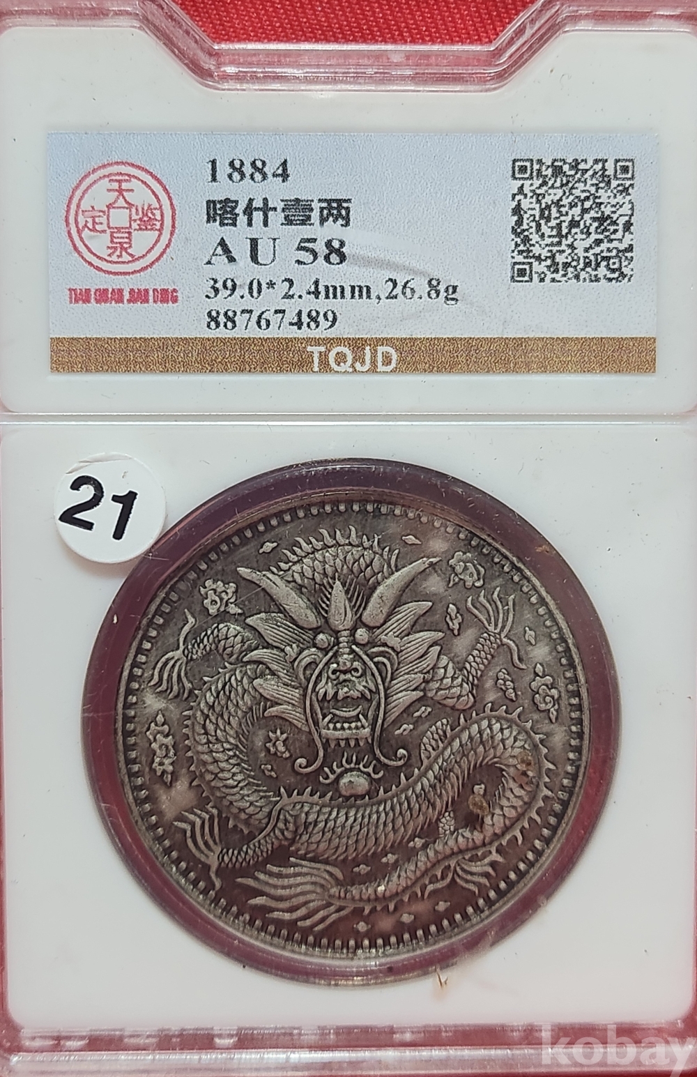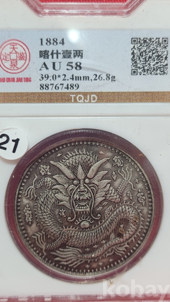1884 년 큐알코드(QR CODE)가 함께하는 은색 광서원보 (光緖元寶) 화패로 밀봉된 상태입니다,