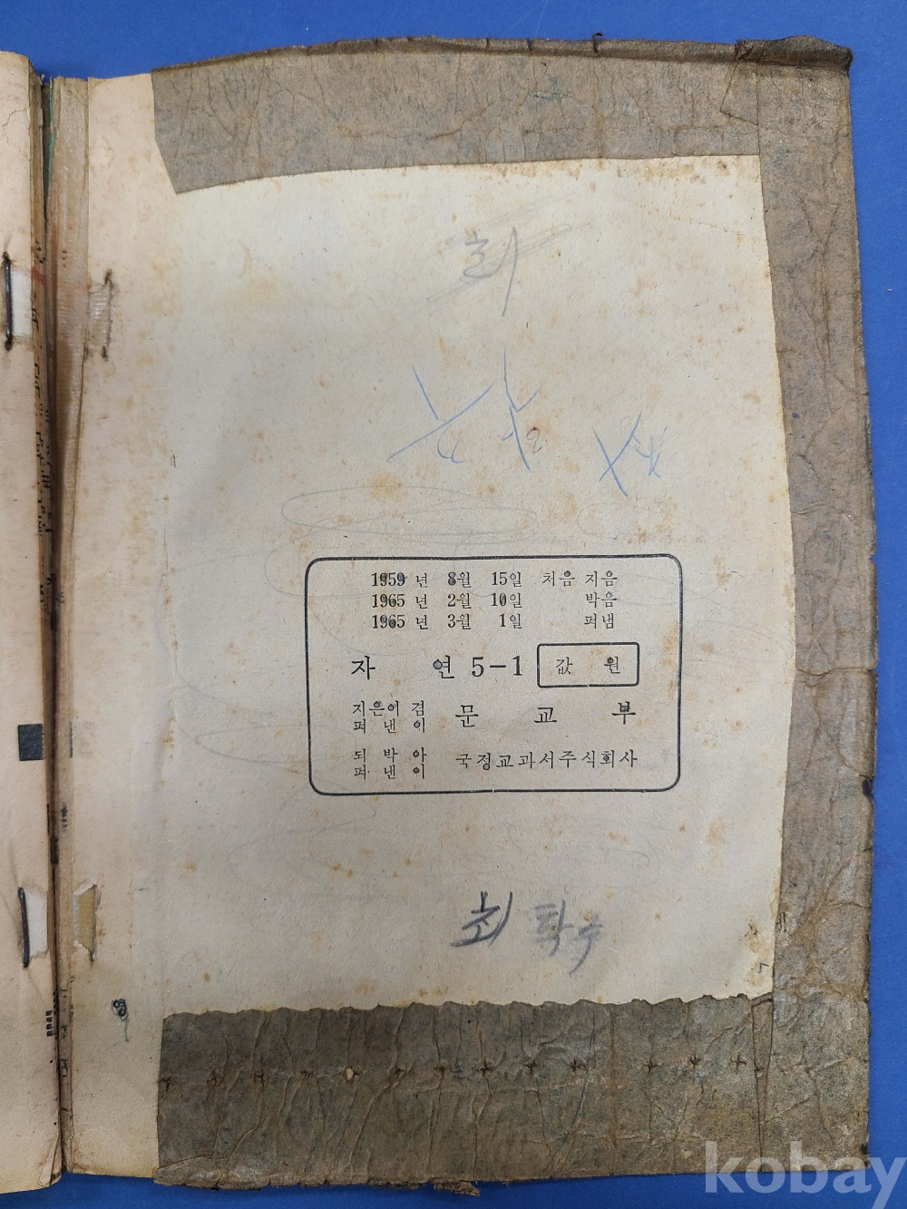 [교과서] 자연5-1*1965년/문교부 발행,낙서, 물먹음,찢어진부분 있음