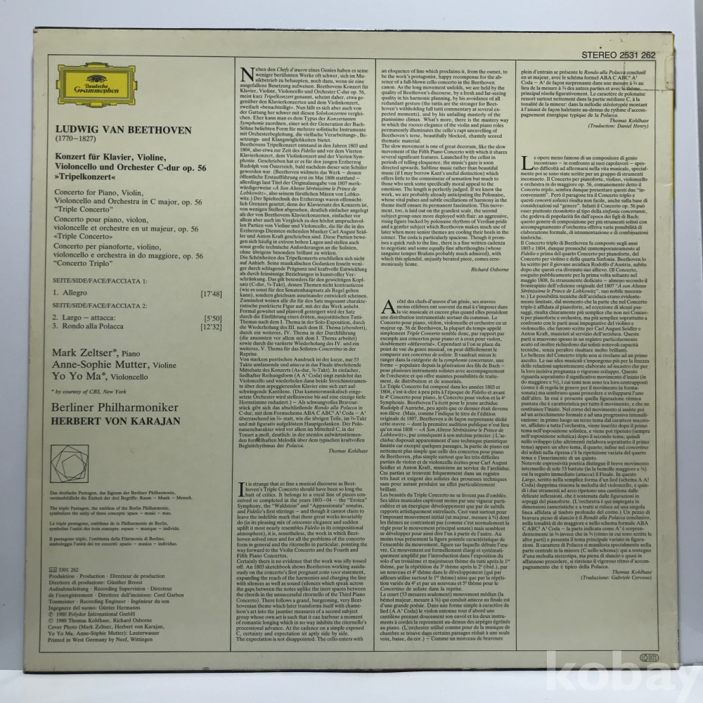 LP 160-22 BEETHOVEN Konzert fur Klavier, Violine, Violine, Violoncello und Or C-dur Op.56 80 수입 자켓 EX 알판 EX+
