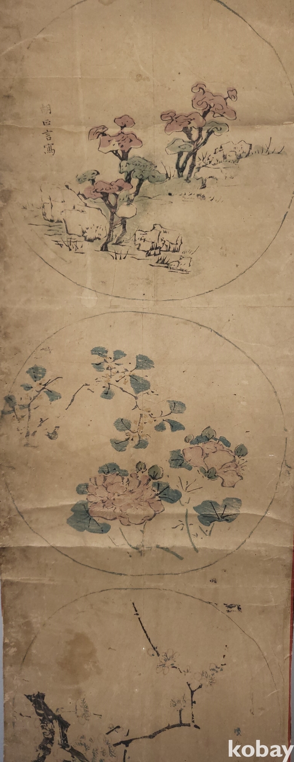 구한말 연대 종이에 당채로 채색된 민화로 명화입니다,