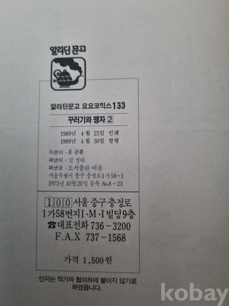꾸리기와 맹자2 윤준환 요요코믹스(도서출판예음) 1989