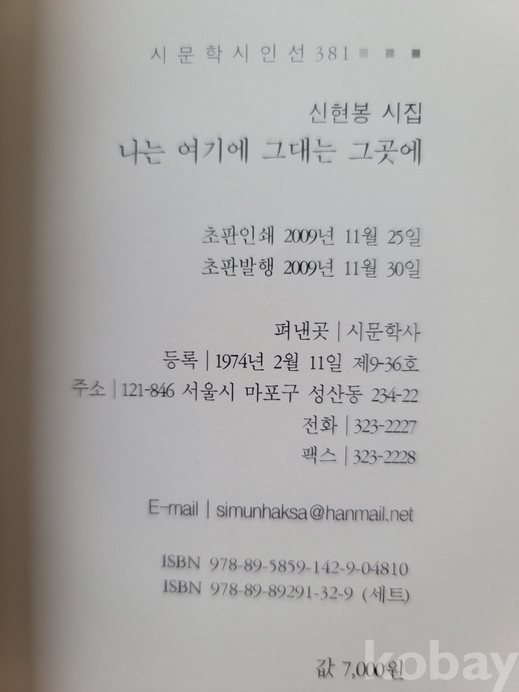 2009년 발간한 제8시집 『나는 여기에 그대는 그곳에』