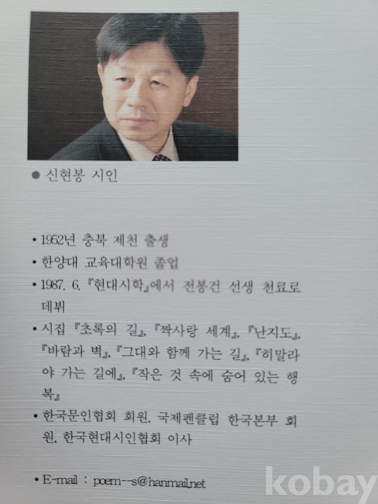 한양대학교 교육대학원 졸업 & 서울시 공직자로 정년퇴직한 시인(申鉉奉).