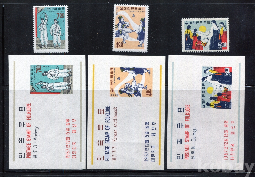 - [시트/우표] 1967년 미사용 민속시리즈 4집 (All MNH : Mint Not Hinged) : 이미지 참조하세요