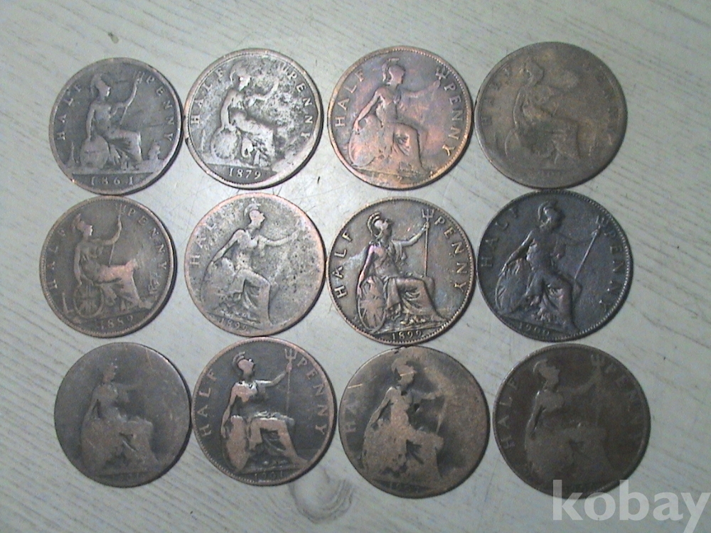 사진이미지와 같이 영국의 귀한 빈티지 1/2페니 12세트 주화집을 판매하며 즉구시 무료배송합니다.