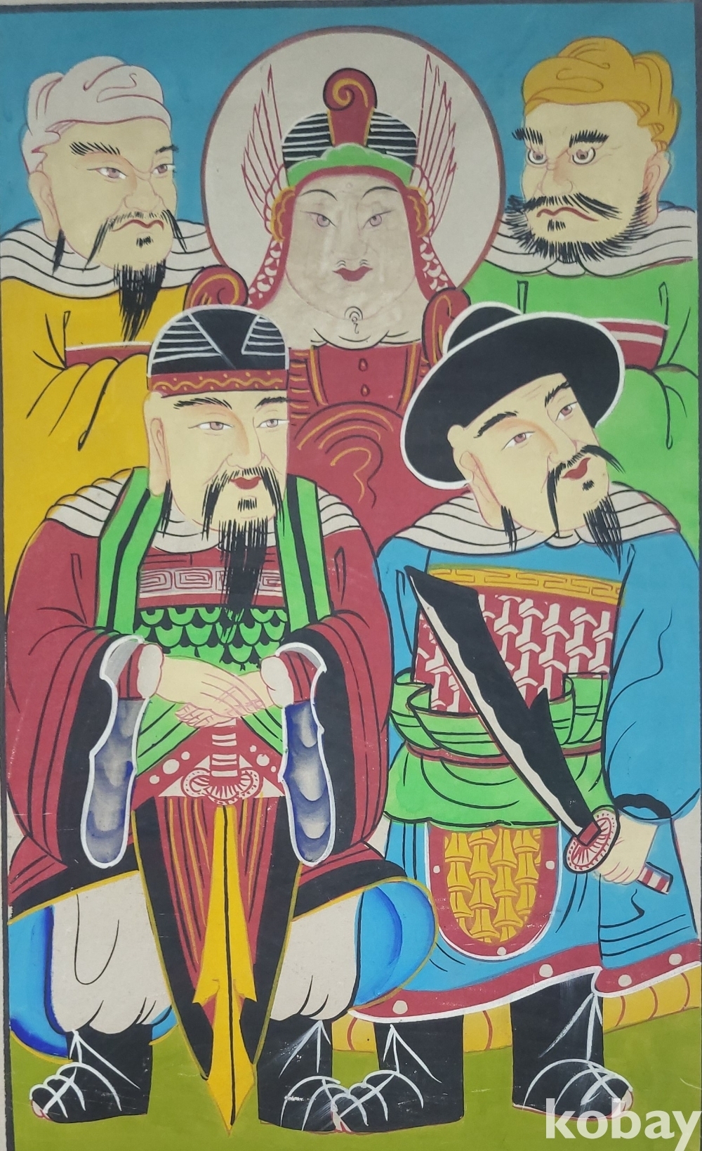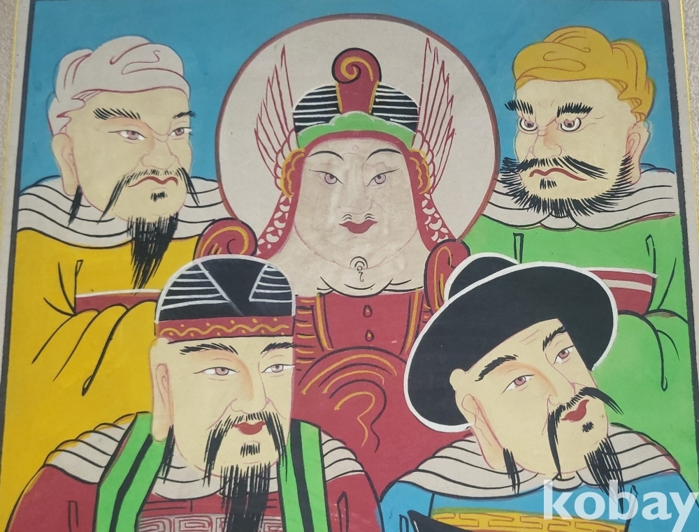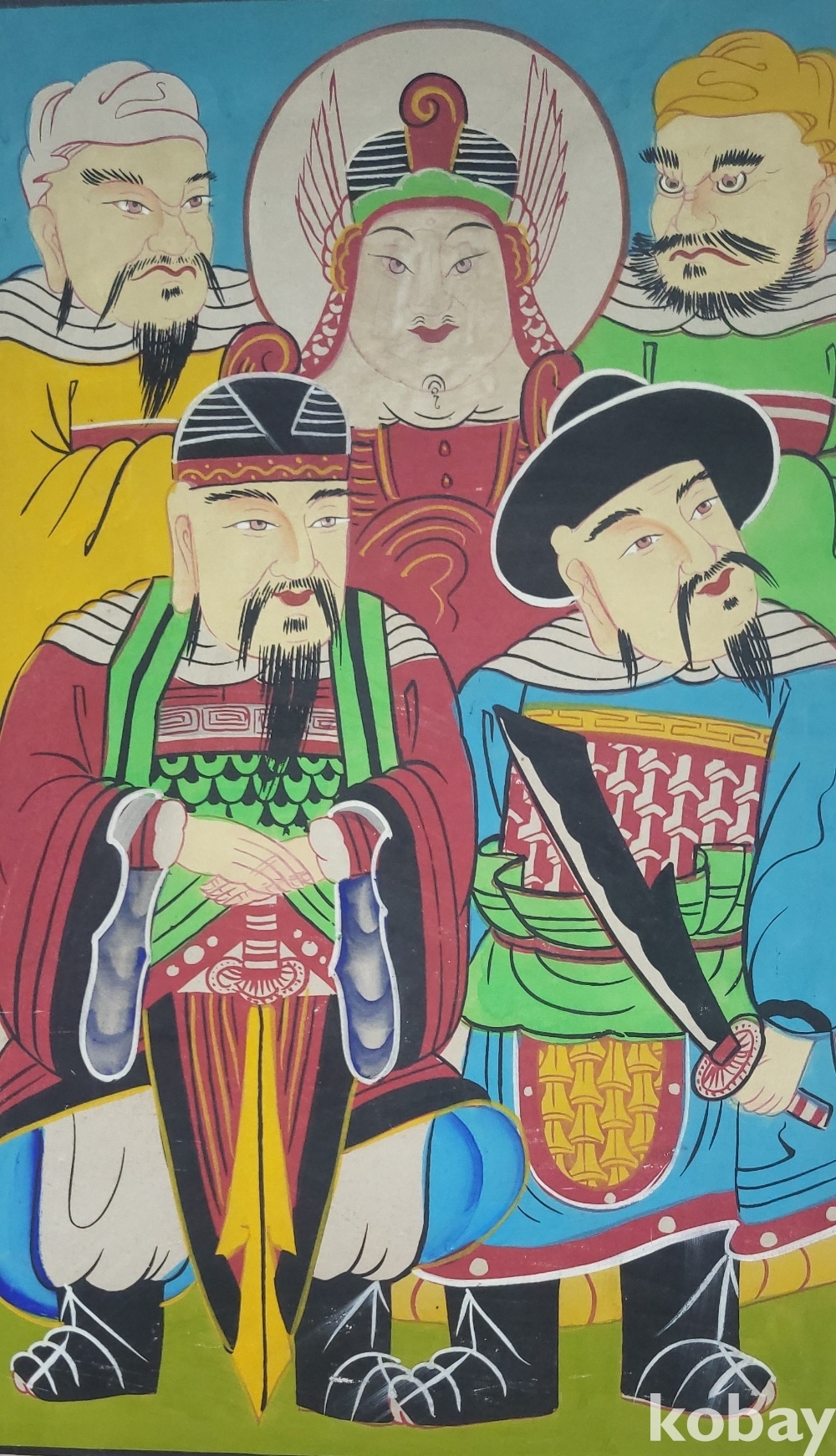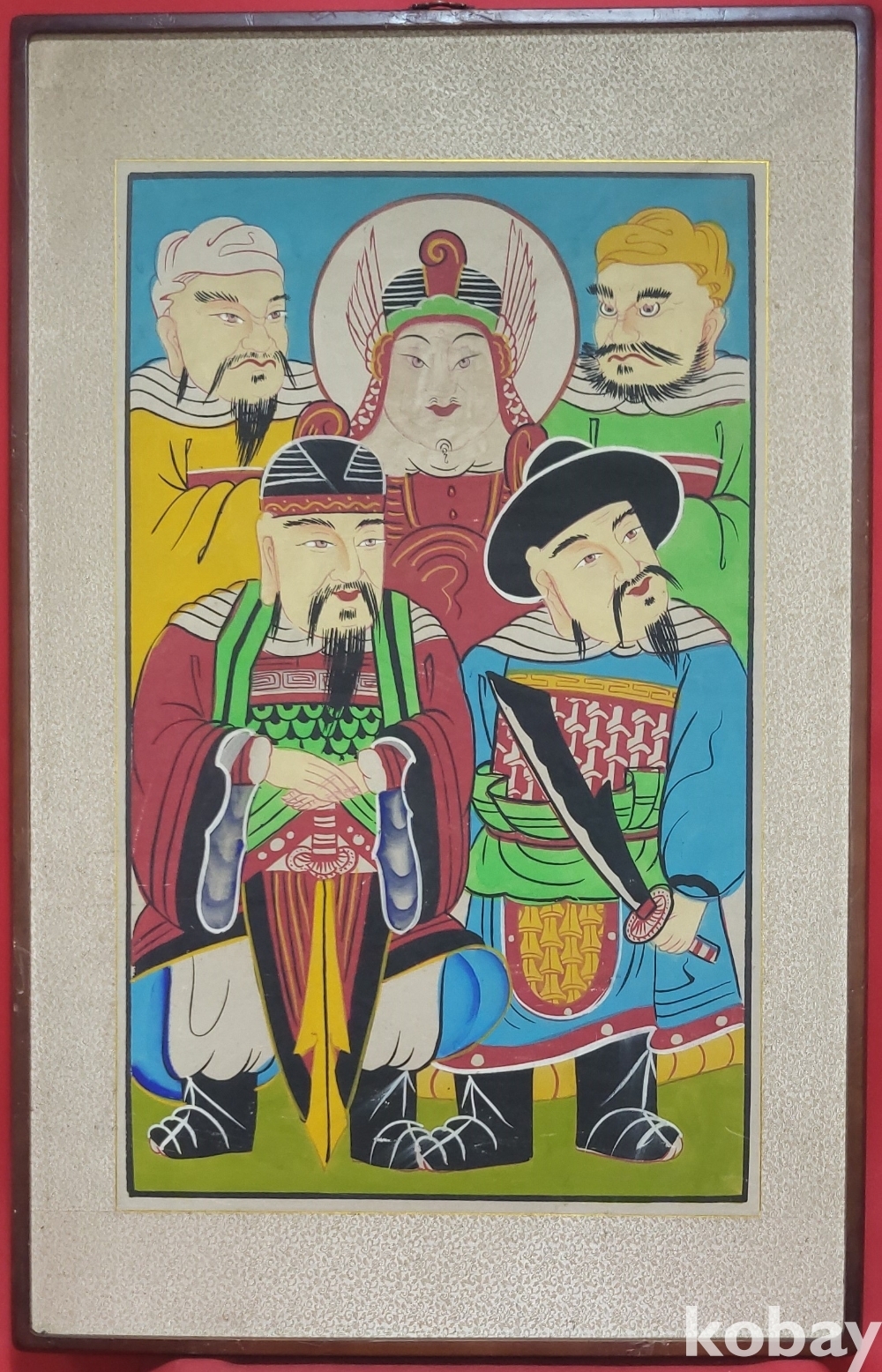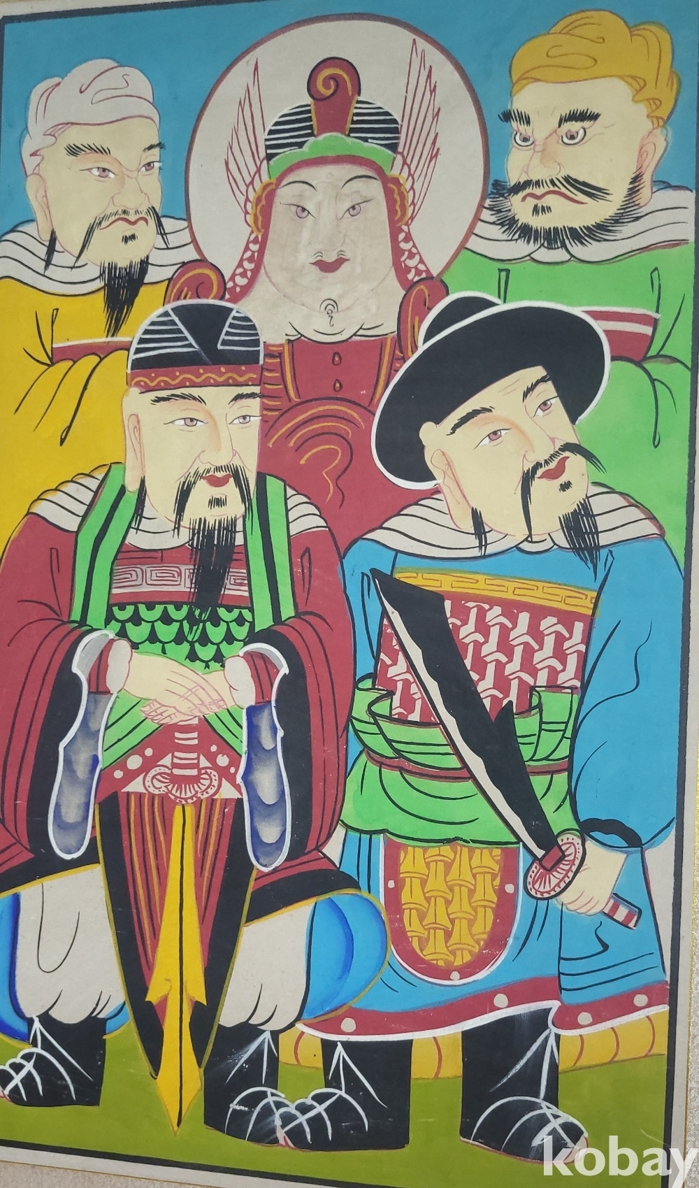 짱짱한 연대 갖춘 베바닥에 그려진 무속도(巫俗圖)입니다,