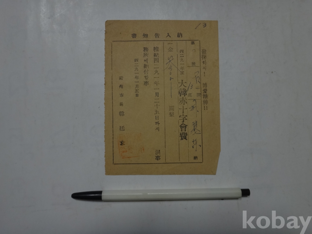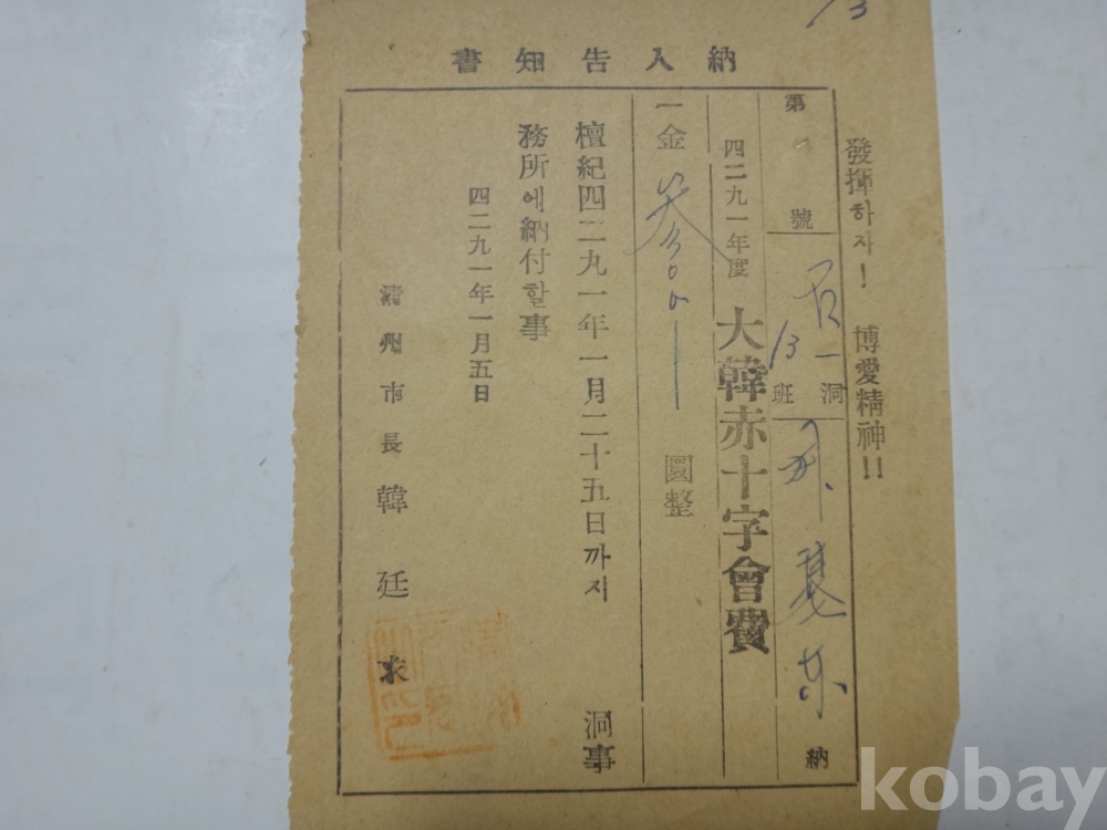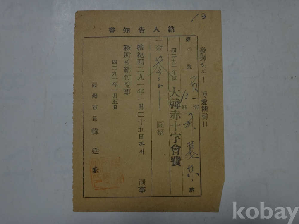 발휘하자 ! 박애정신 !! - 대한적십자회비 (1958년, 청주시장)