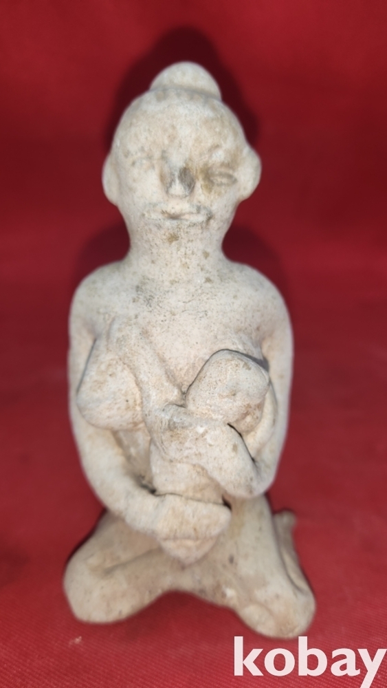 조선시대 연대 갖춘 백자 모자(母子) 인물상 도자기입니다,