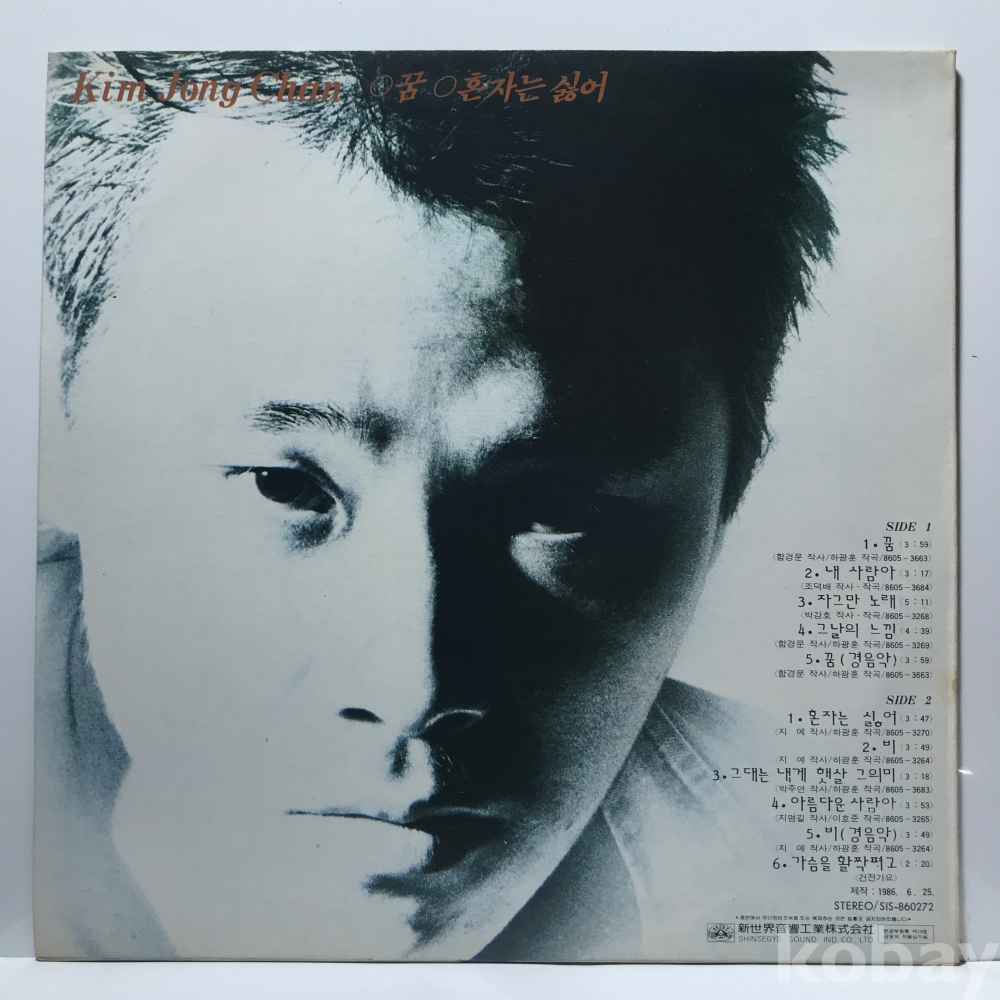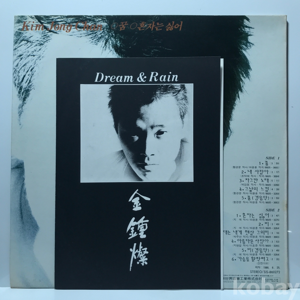 LP 30,900-252 김종찬 - 꿈/ 내 사람아/ 혼자는 싫어 . 86 신세계 자켓 EX 알판 EX+