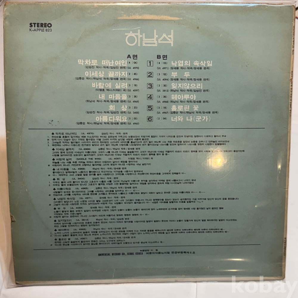 EX : 약간의 마모, 모서리 찢김 존재 음반상태