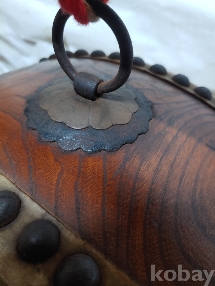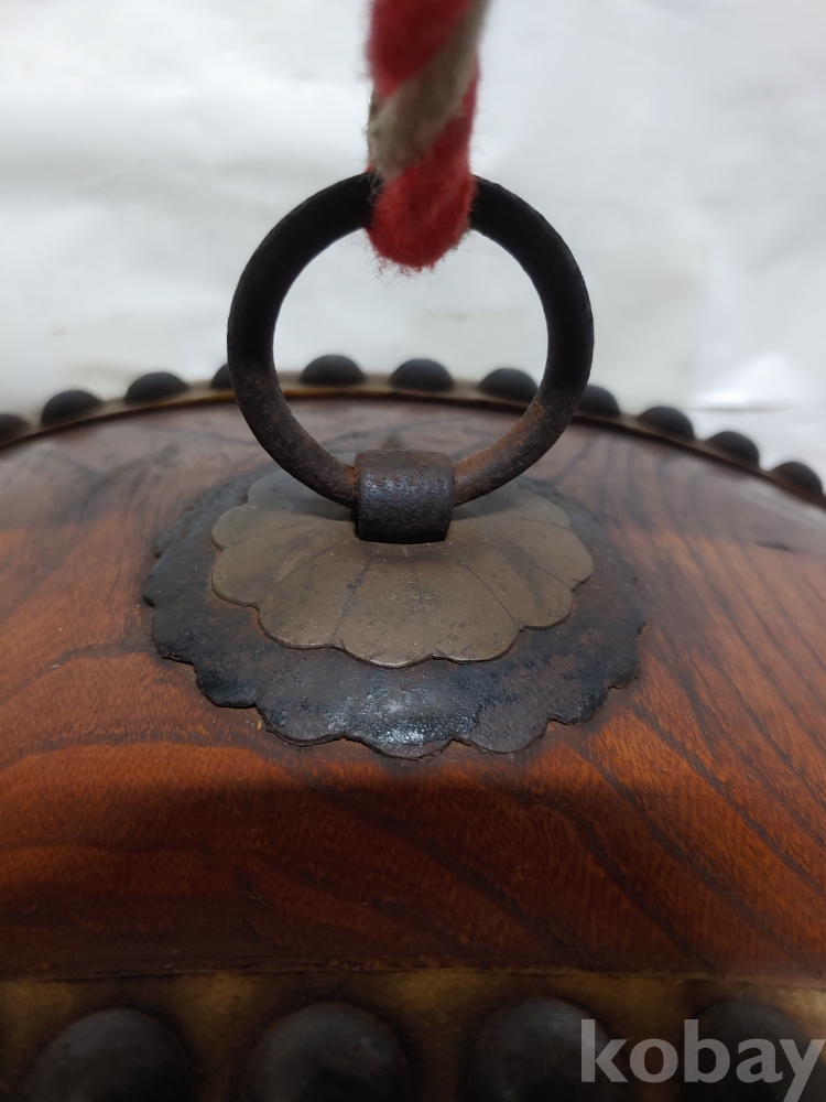 나무에 고정이 되어 있으며 땟물이 아주 좋은 옛날 괴목나무 북이며