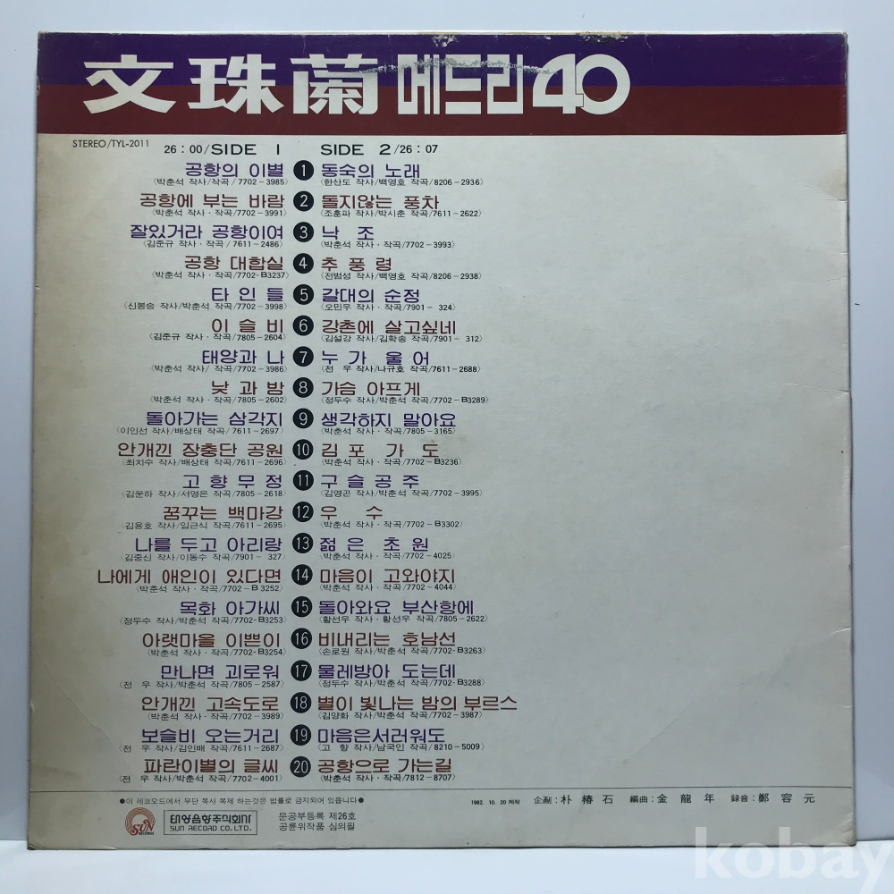 LP 300-138 문주란 메들리 40 - 공항의 이별 87 태양 자켓 EX 알판 VG+