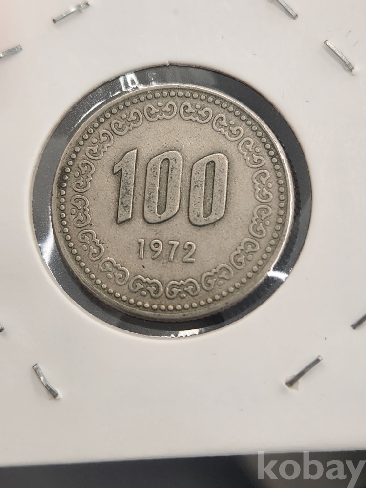 한국주화 - 특년도 1972년 100원 /눈도안 살아있음