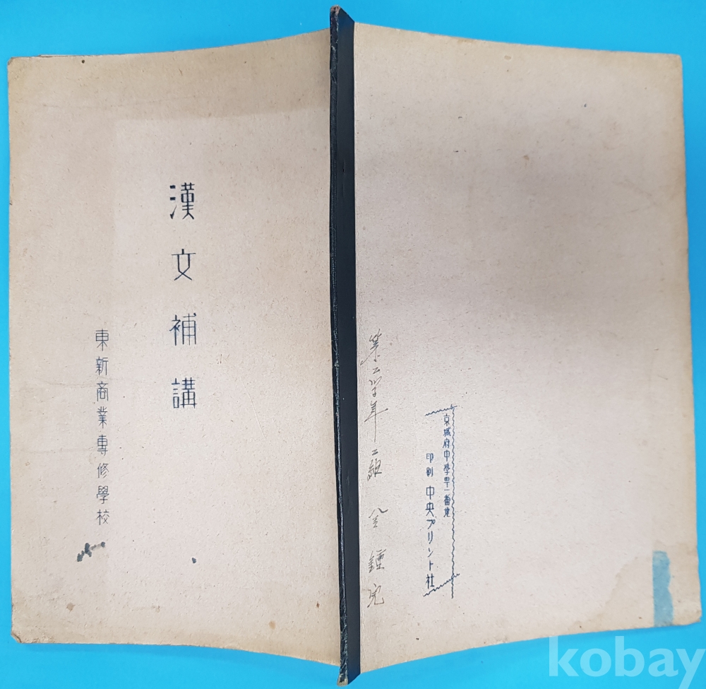 일제강점기 교과서 [漢文補講] 東新商業專修學校 발행, 경성부 중학정1번지 인쇄소에서 인쇄 하였다 총 26면.