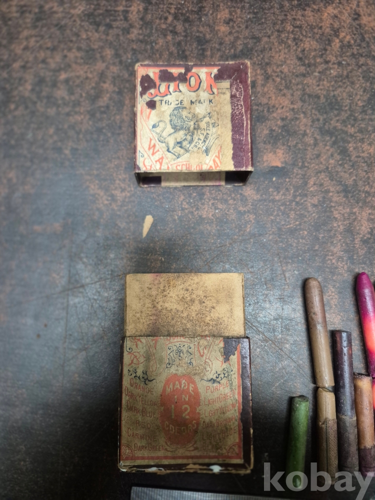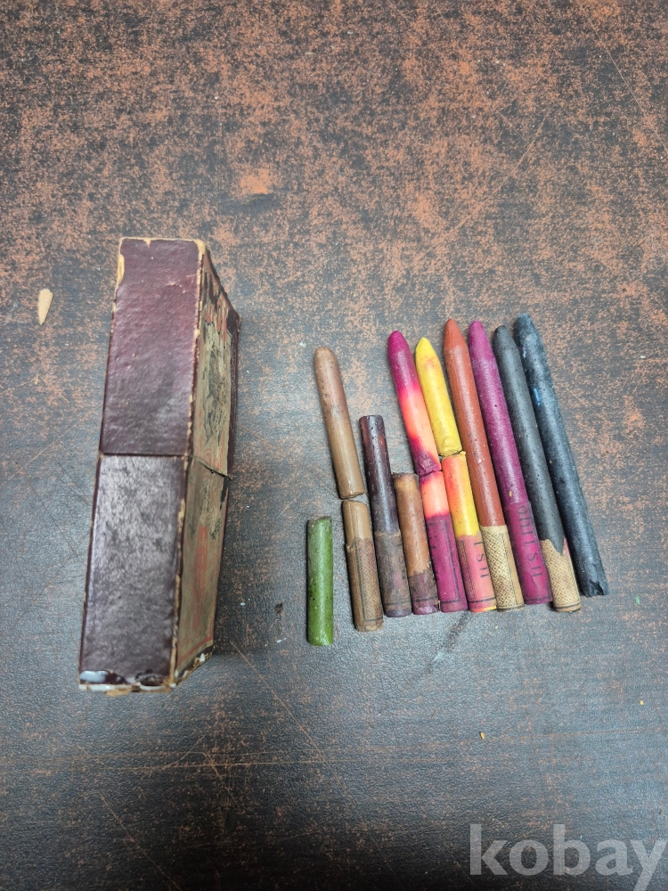 1940년대 오래 된 12칼라 크레용 THU DE MAIK 상표 국적은 유럽인지 미국 인지 모르겟습니다 5*9*2