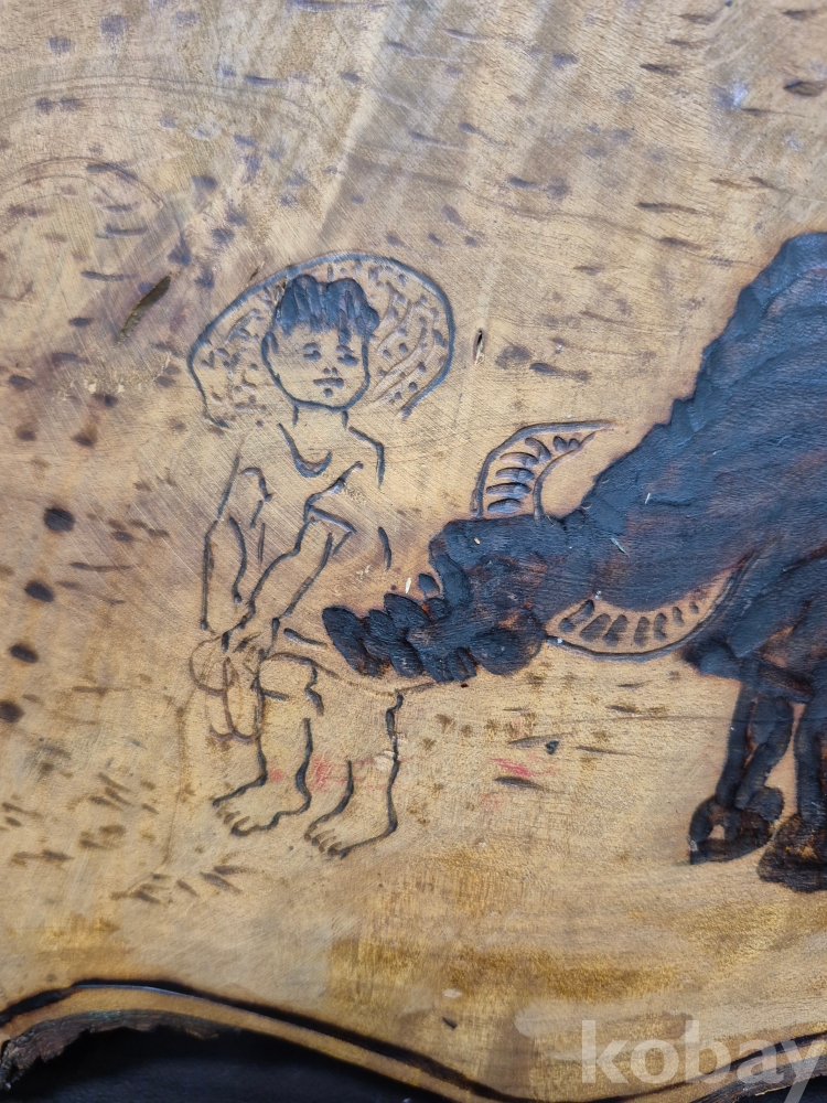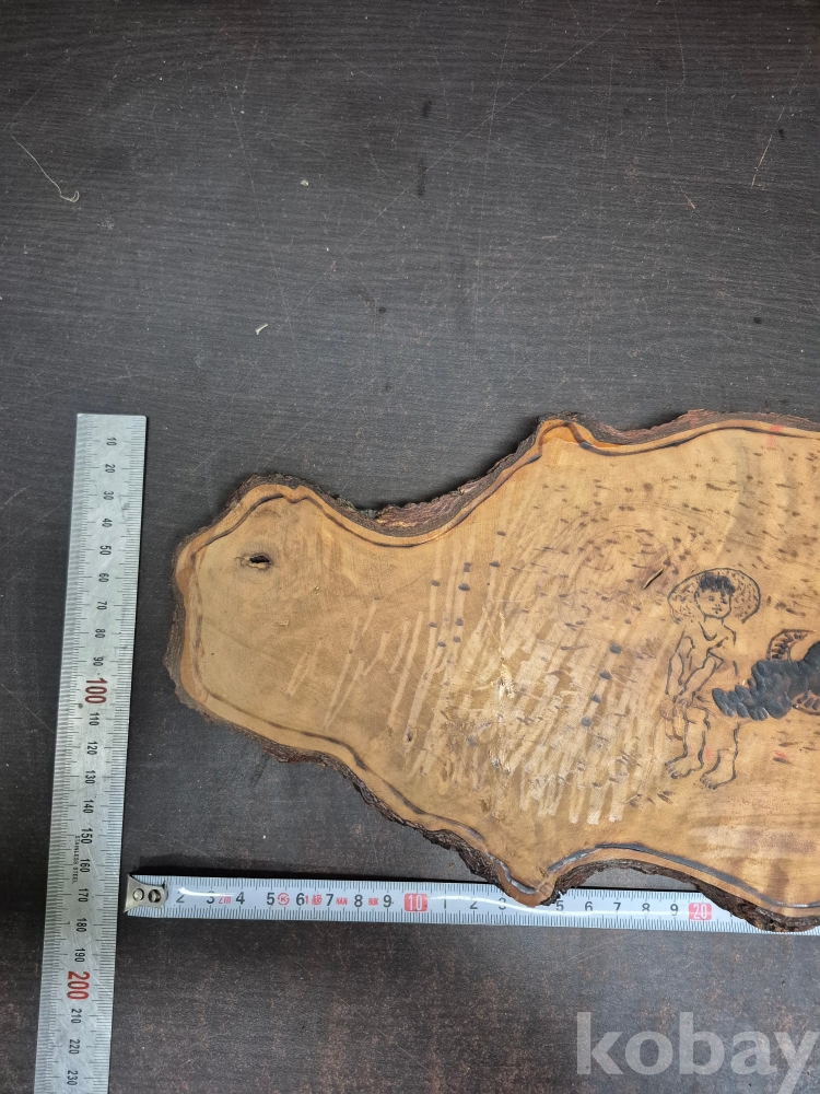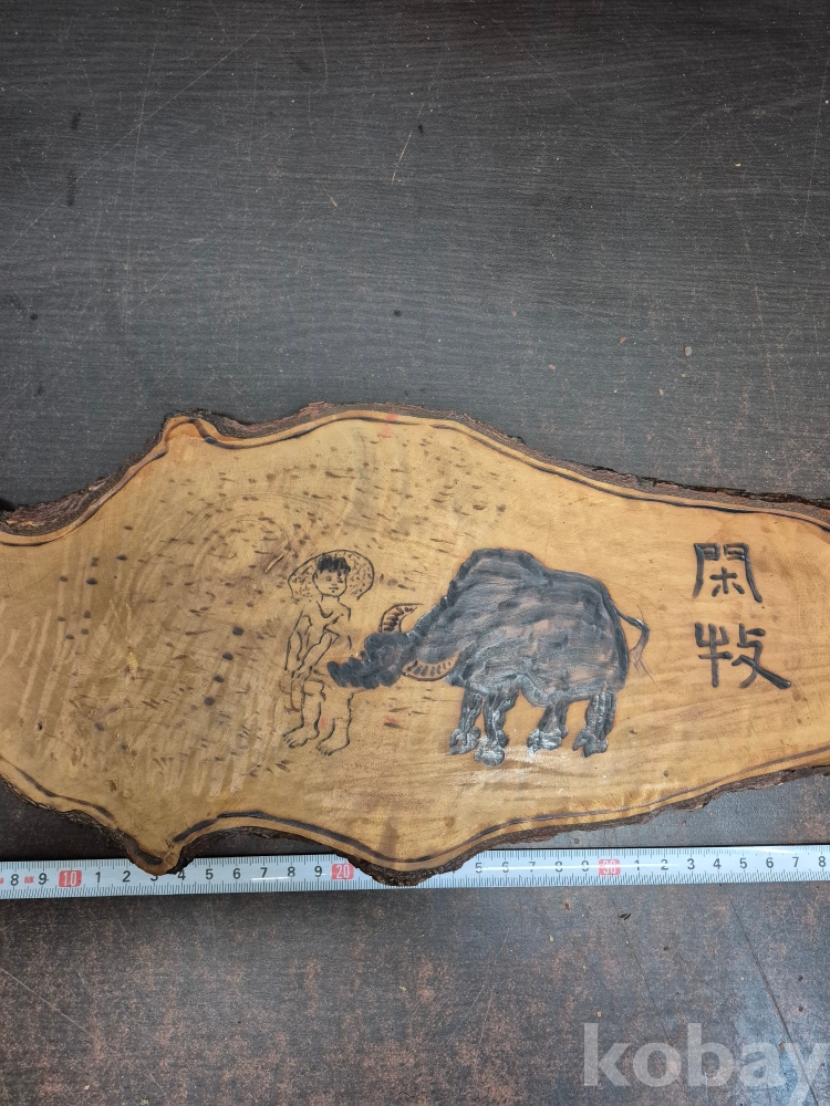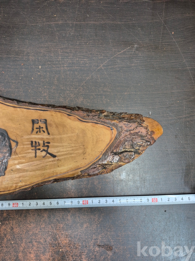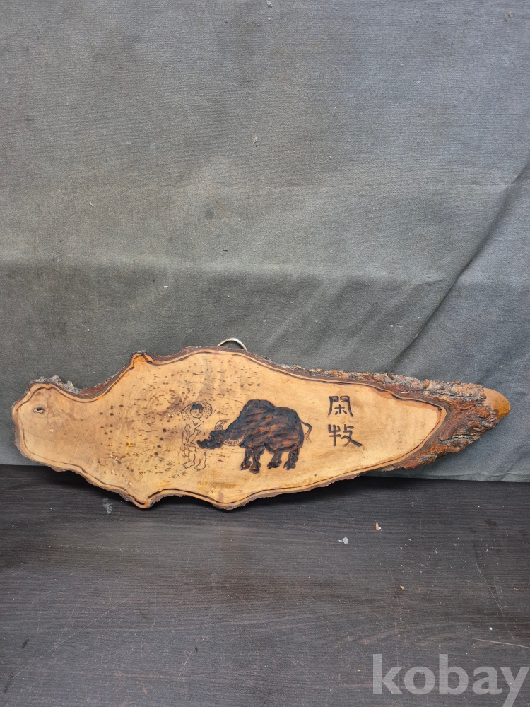 1970-80년대 원목에 인두화로 그려낸 소를 모는 소년 51*18*2
