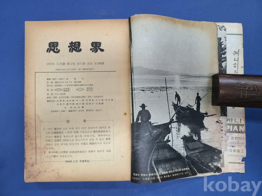 ▶사상계(1964년 11월호)/사상계사,380쪽/전체적으로 헐었고, 얼룩있음