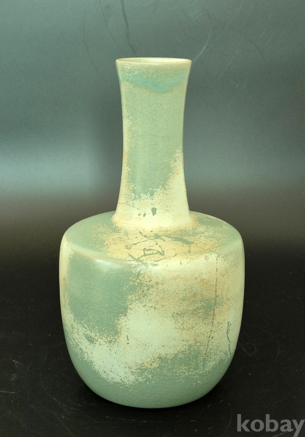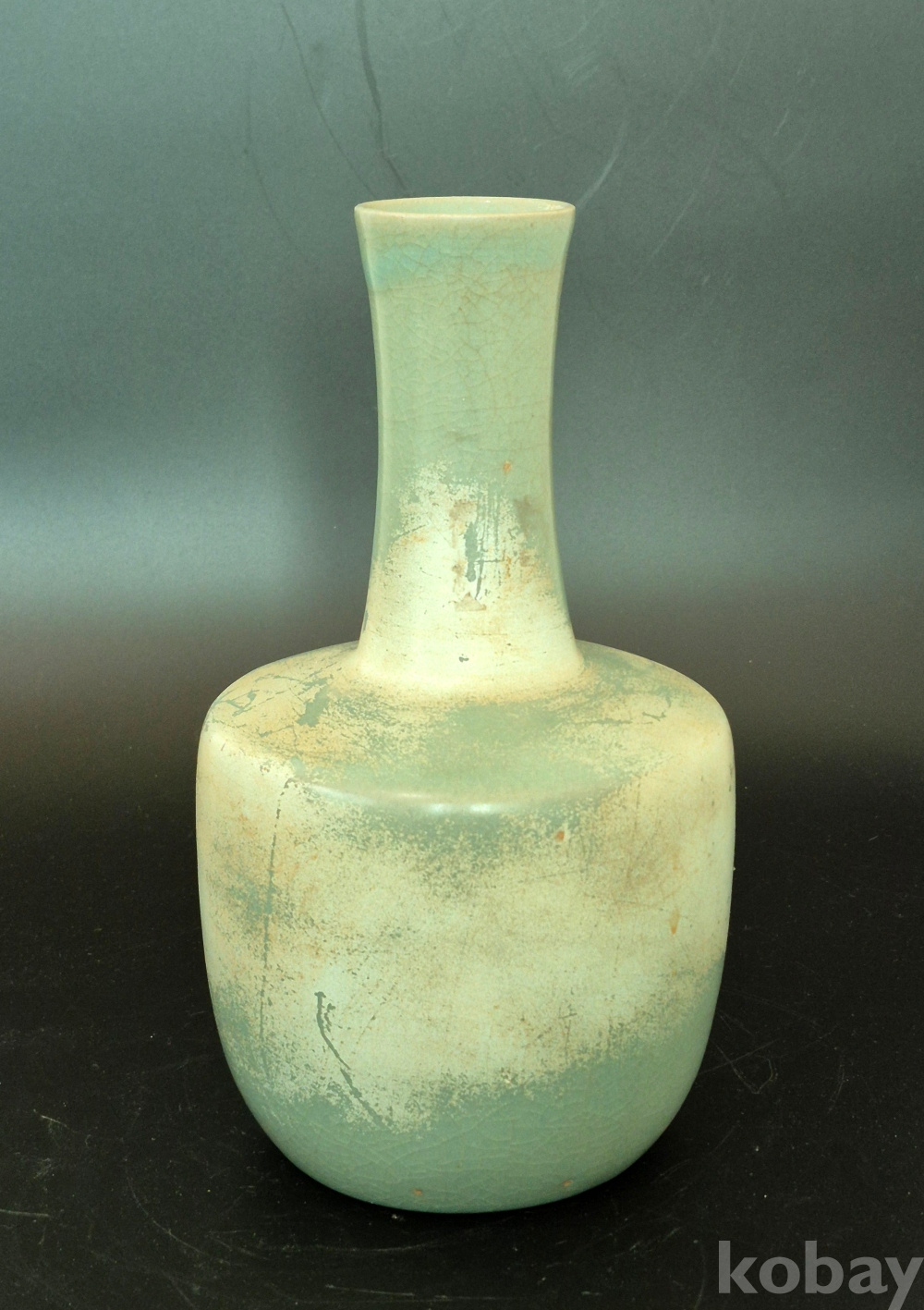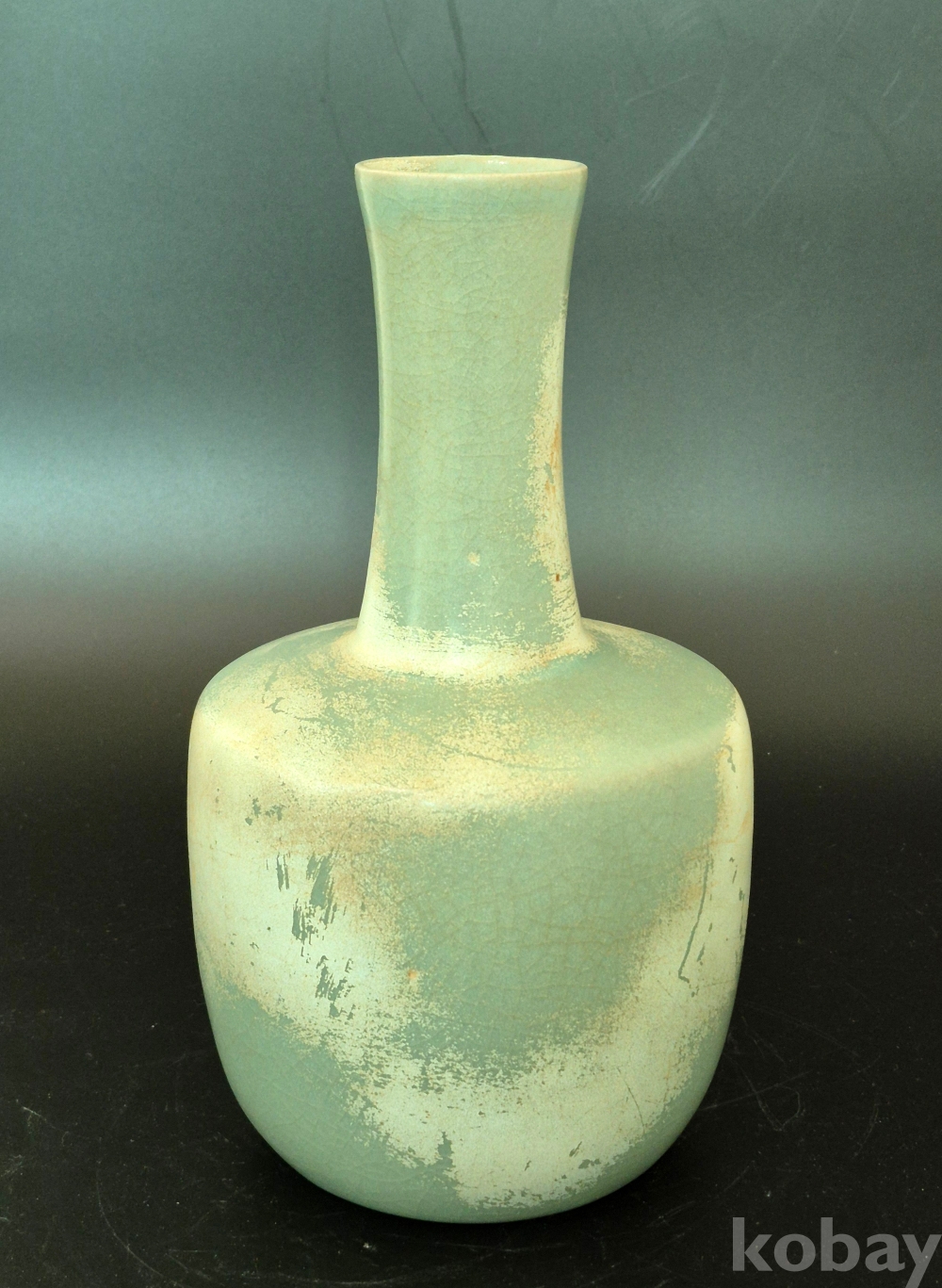 긴 목을 가진 고려청자 인데, 방망이 형태라 하여 봉추병이라 하며 특이하게도 바닥이