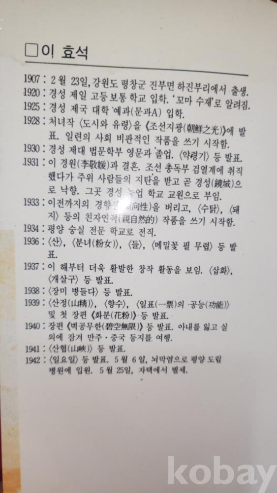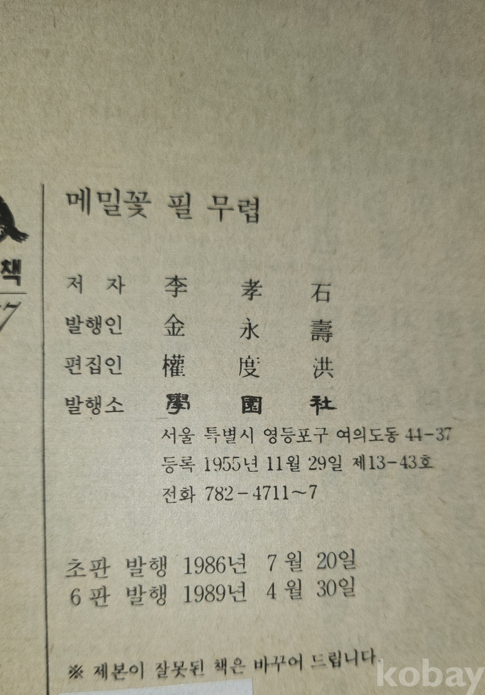 1989년 발행된 이효석님의 메밀꽃 필 무렵입니다,