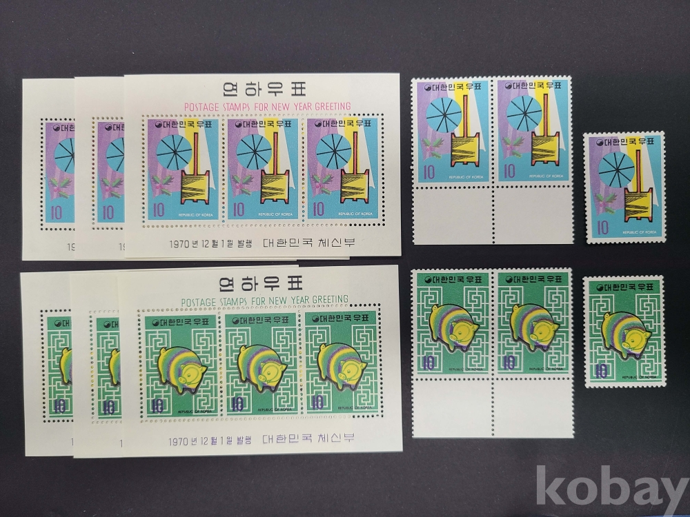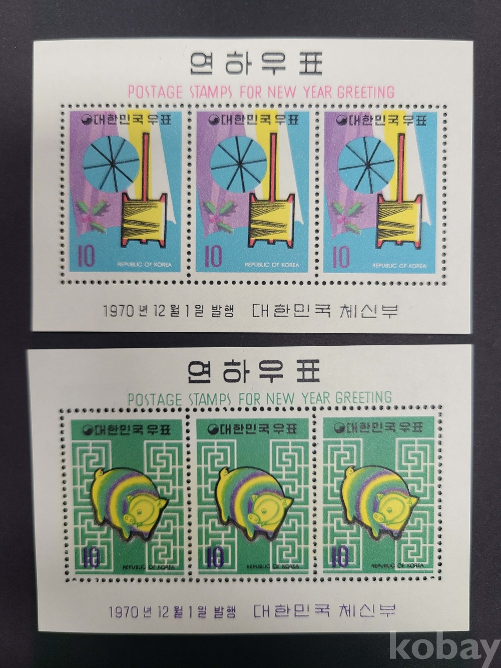 71년용 연하 우표+s/s 3세트/시트 1매는 후면얼룩