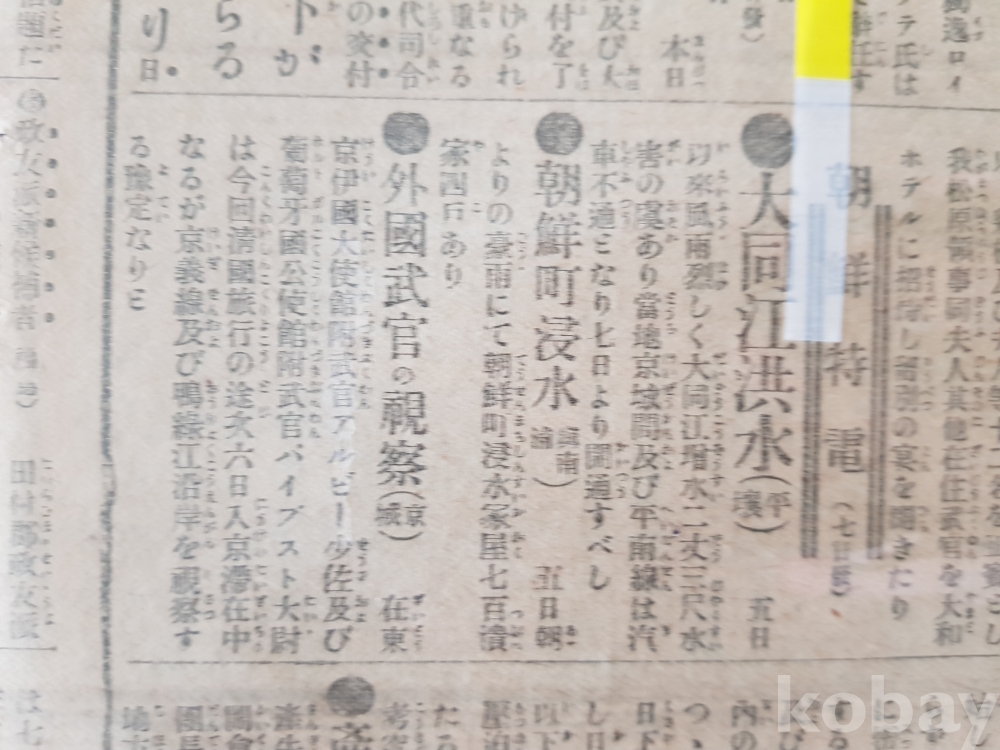 [EE84]*東京日日新聞/1911.9.8./朝鮮特電.대동강홍수,조선정 침수,외국무관의 시찰/