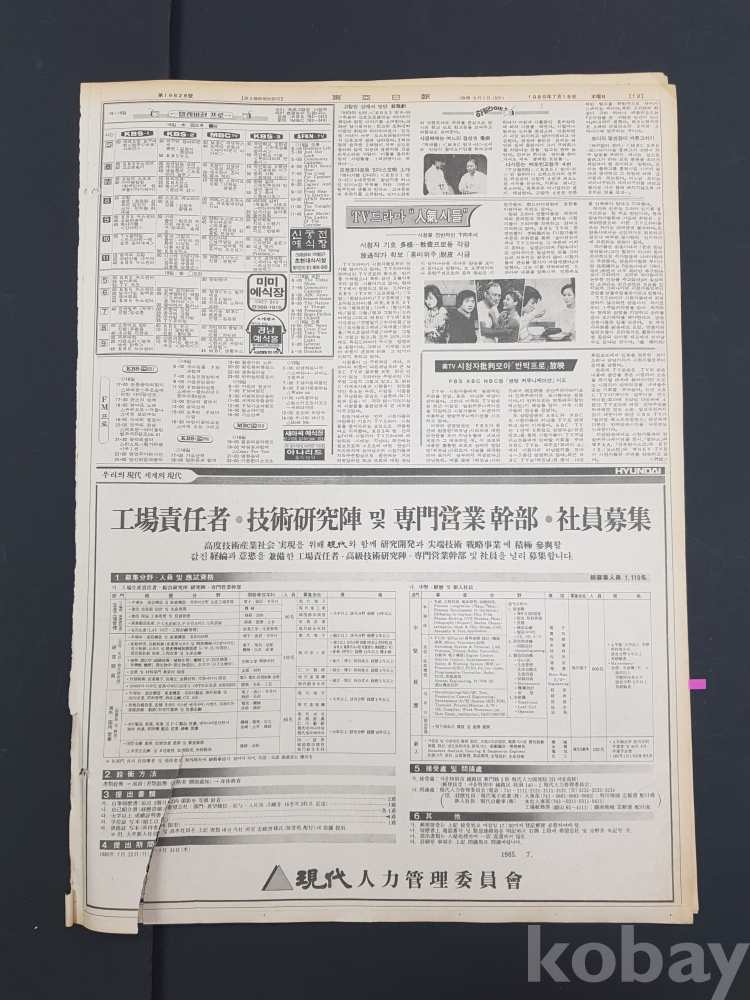 **** 1985.07.18(동아일보)/미도파 여름정기바겐세일 광고포함/약 12면