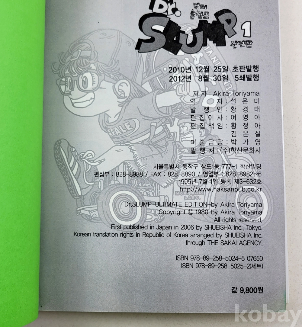 물 품 명 | 미사용 / 닥터슬럼프 : 완전판 (1~5)완결 총5권 / 아키라 토리야마 / 2012년 / 학산문화사 |