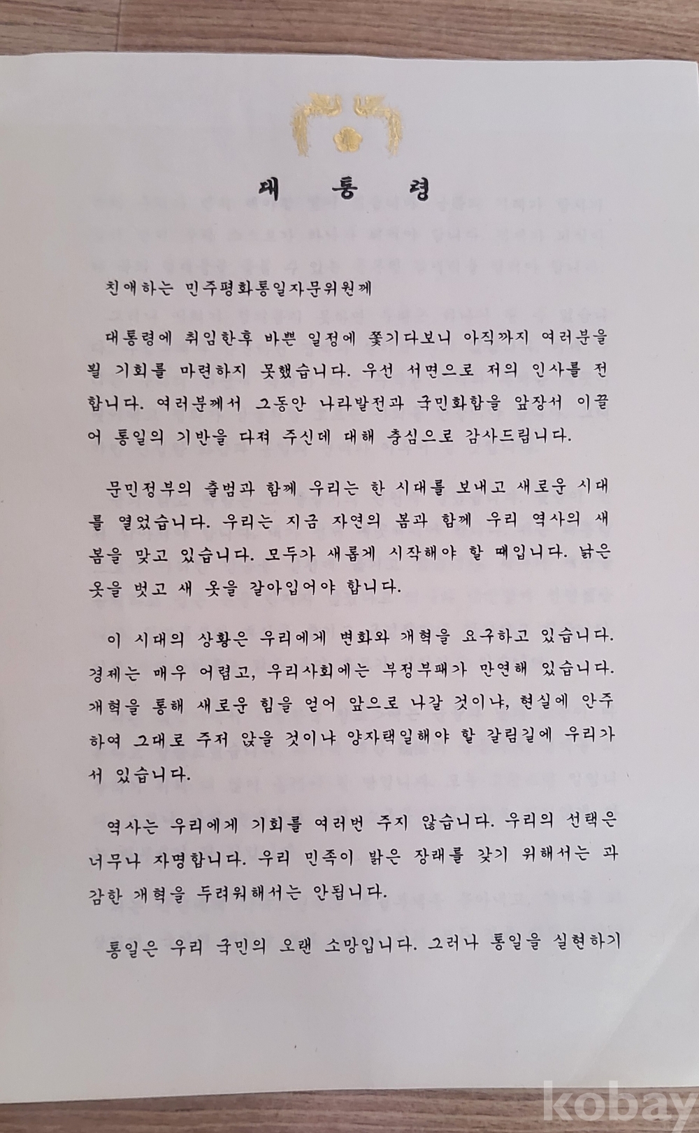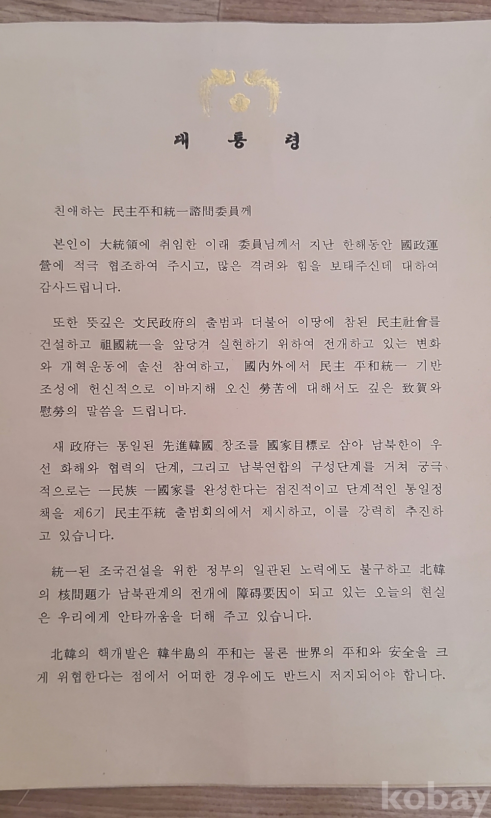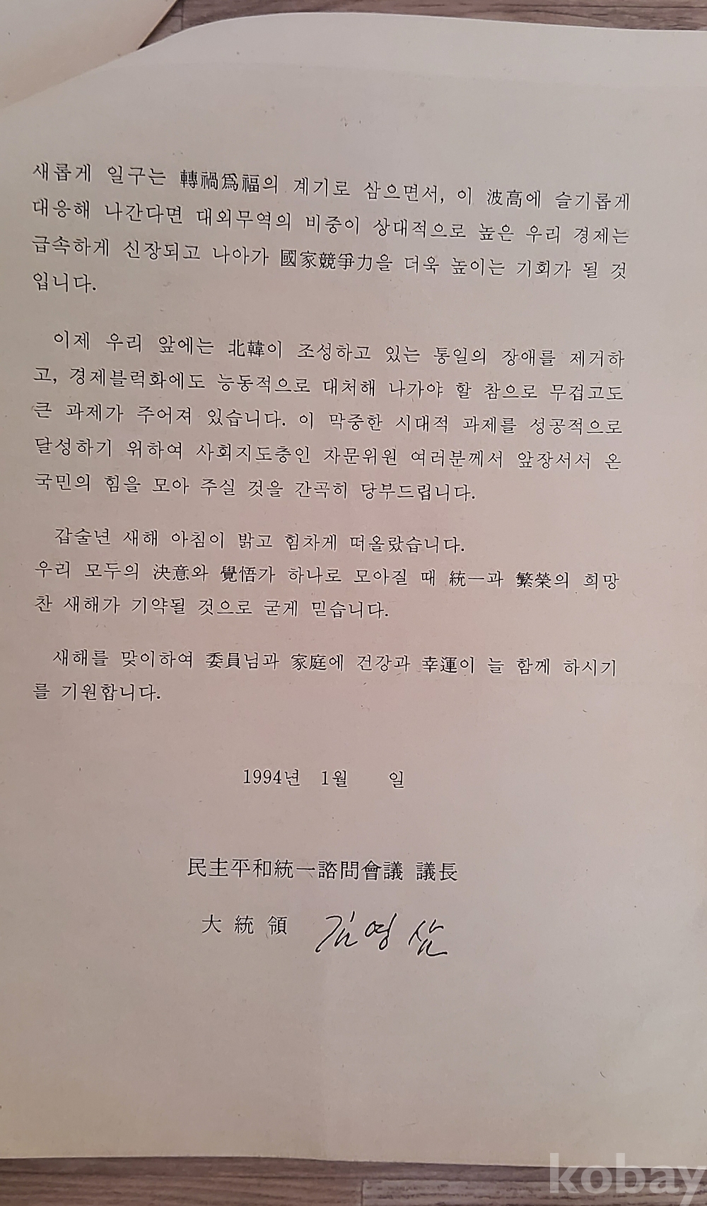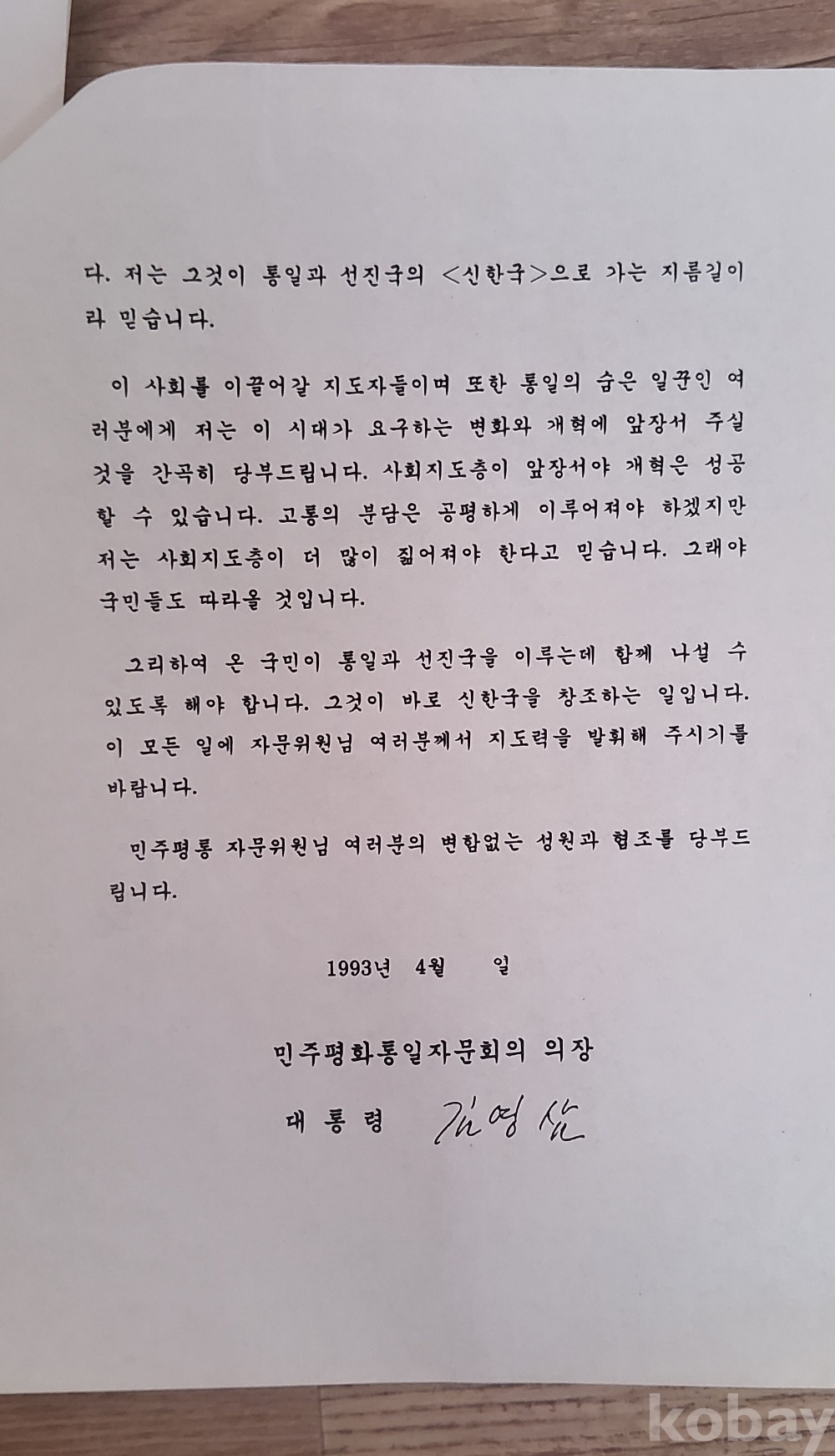 제14대 대통령 김영삼 친서 입니다.
