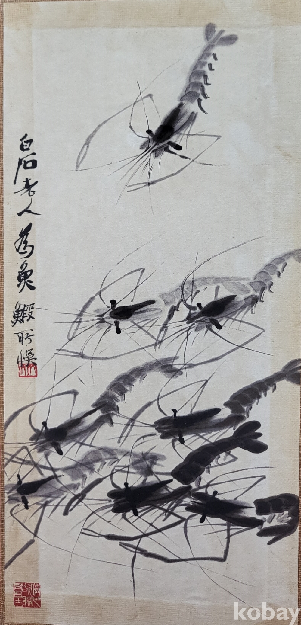 중국 유명화가 제백석 수결이 보이는 소품 작품입니다,