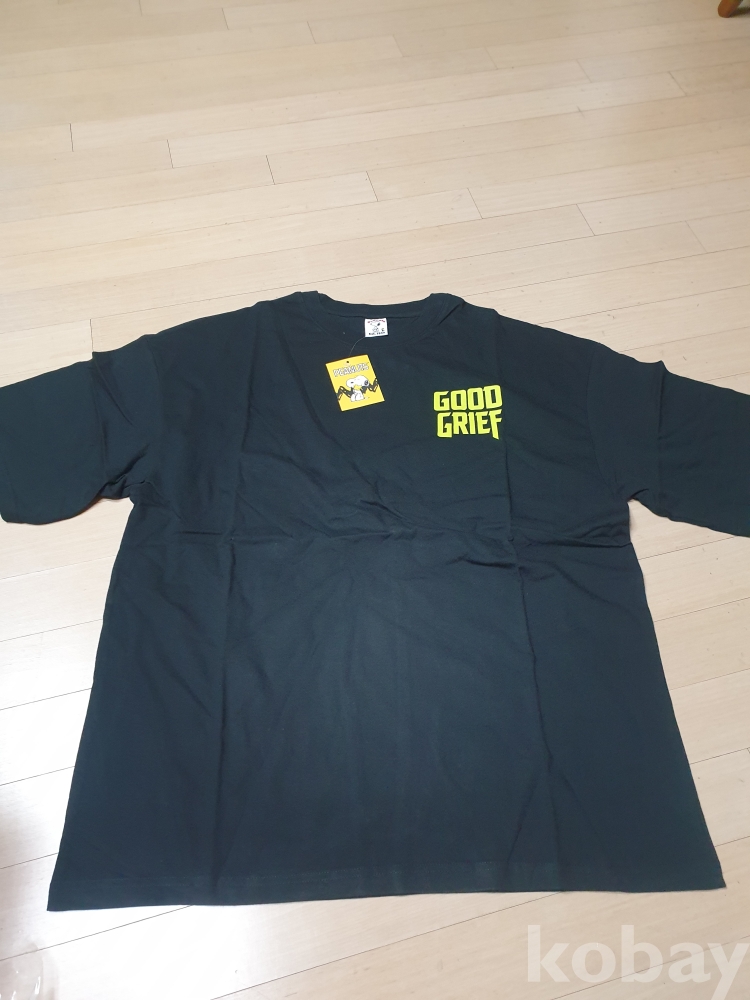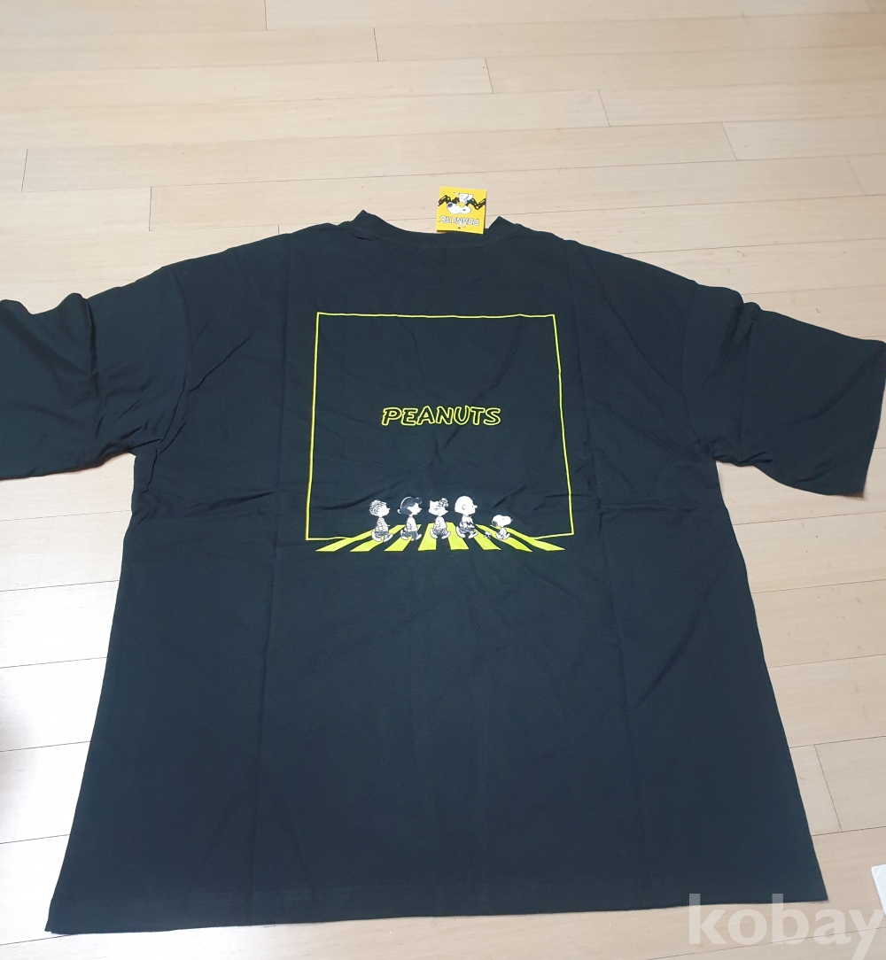 [천원경매] 12-099 스누피 블랙 반팔 티셔츠(택있는 미착용제품, 105사이즈, 가슴단면 60cm, 길이 75cm)