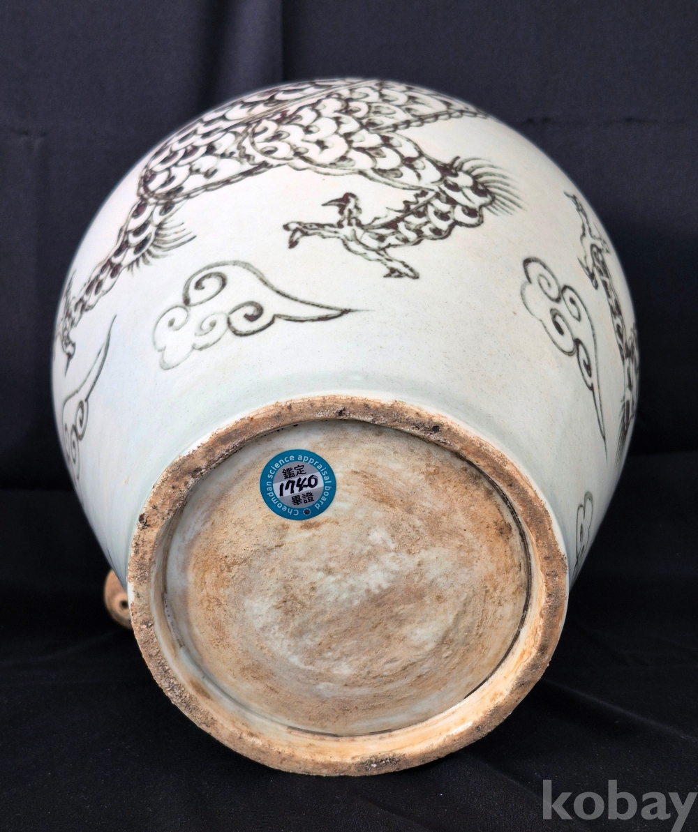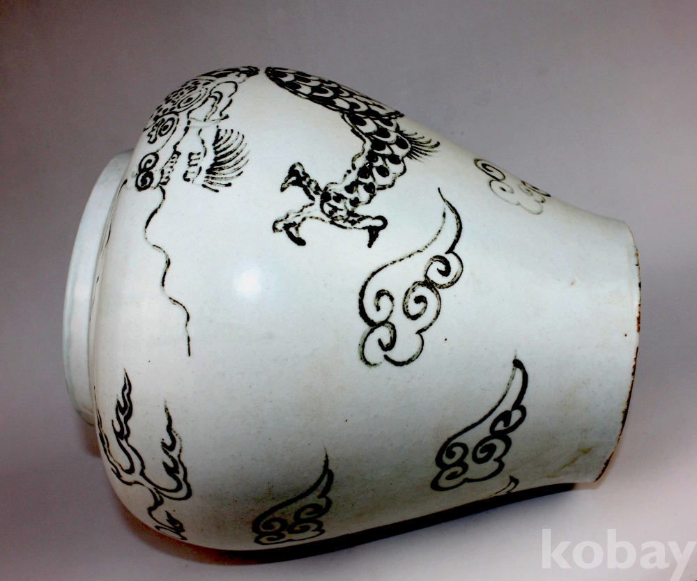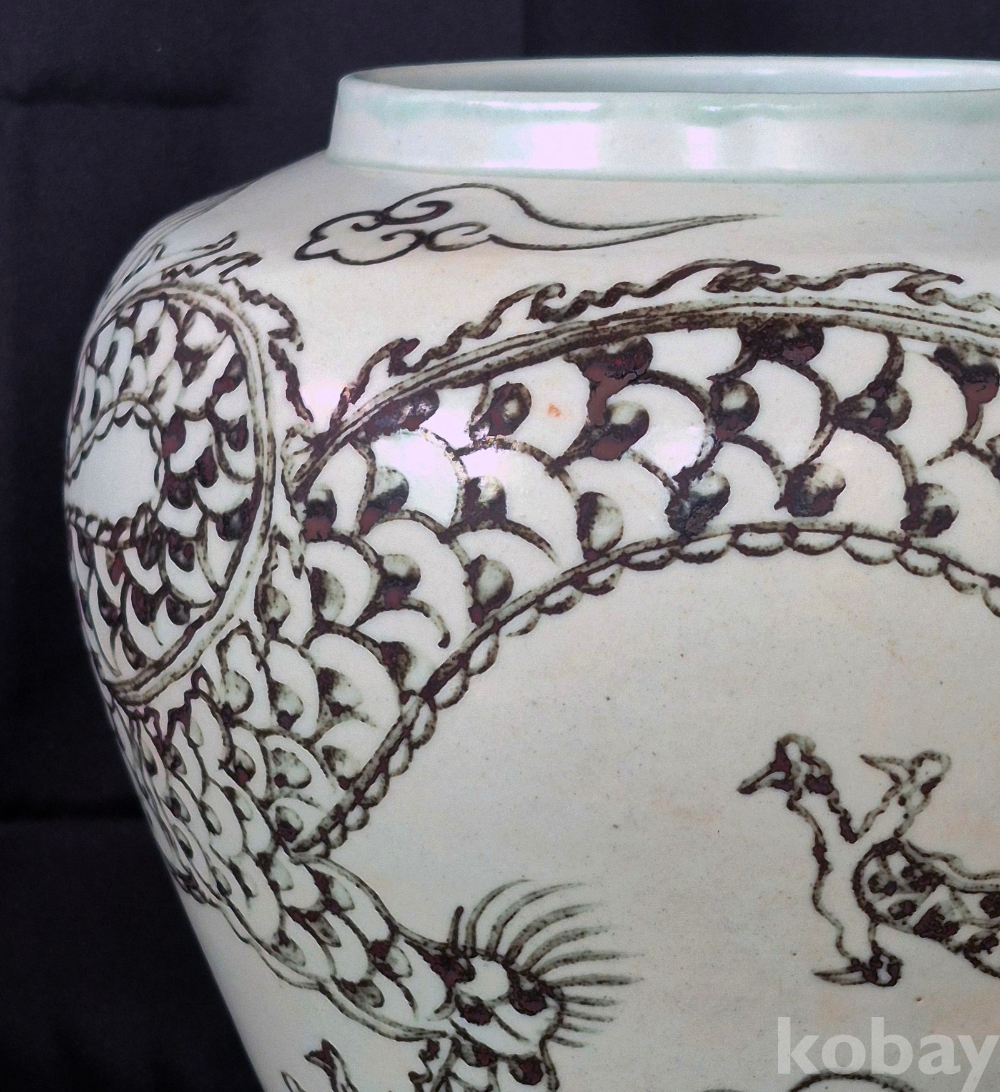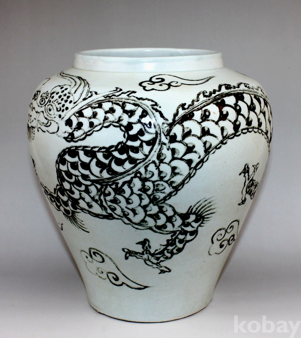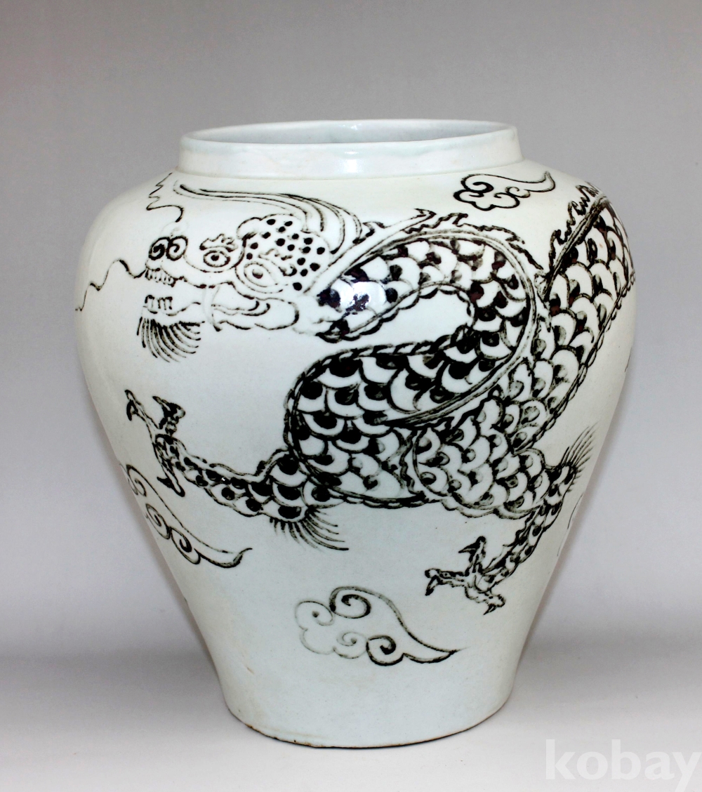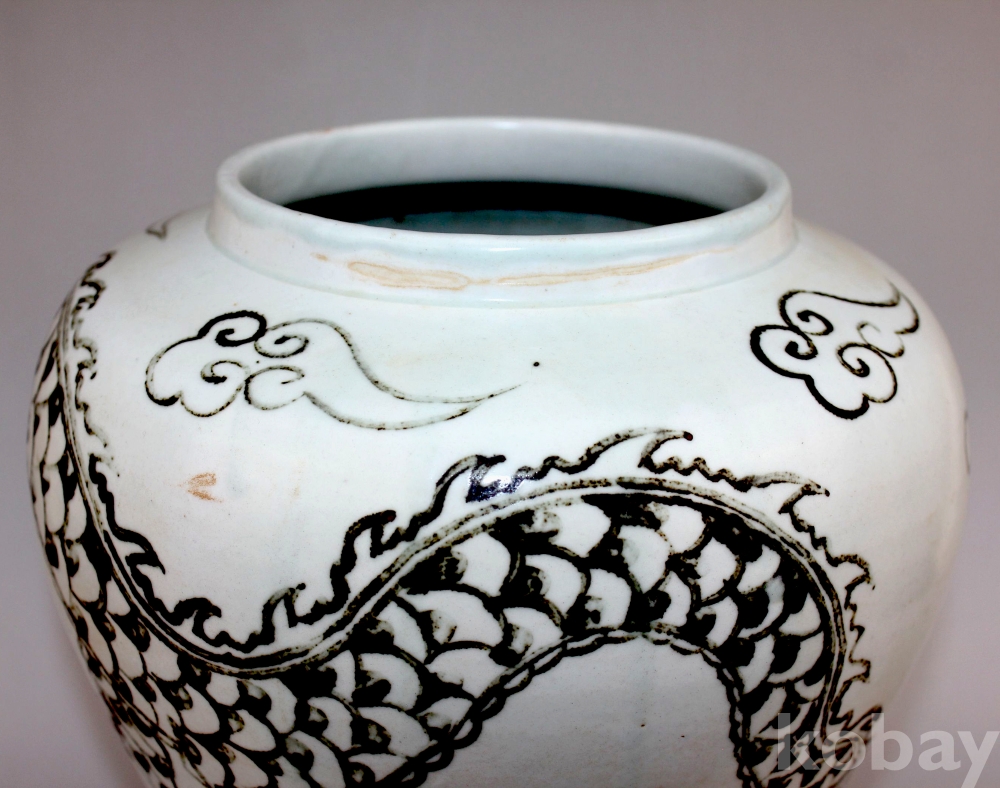 높이26cm 의 상당히 큰 단지(罐)로, 기물 전체를 한마리의 용(一條龍)이 휘감고 구름 사이로 비상하는