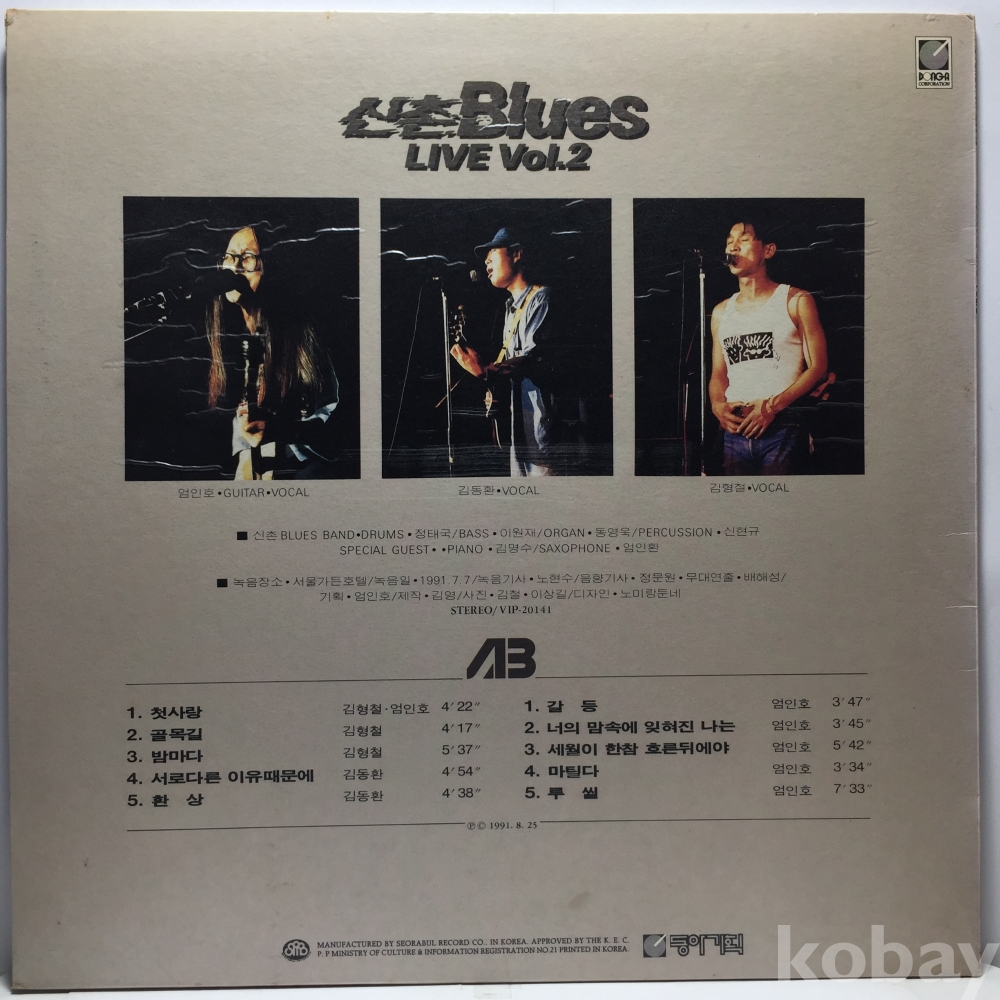 LP 80,100-44 신촌블루스 라이브 2집 - 김형철 엄인호 자켓 EX 알판 EX+ 91 년 국내반