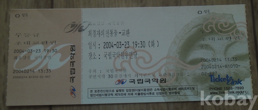 2004년 최경자의 전통춤 공연 초대교환권