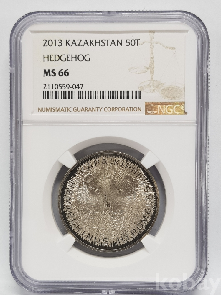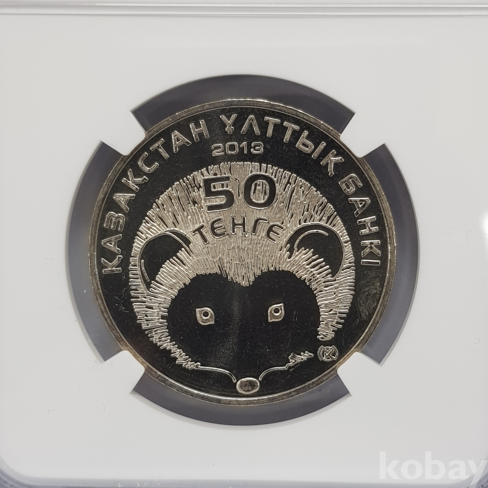 - 카자흐스탄 2013년 브란트 고슴도치 50텡게 NGC MS 66 그레이딩 주화