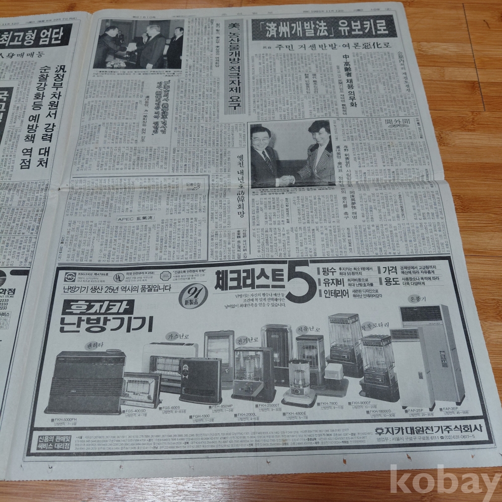 금성 바이오 온풍 난방기 ㆍ후지카난방기기 광고 조선 91년11월12일 올려드립니다