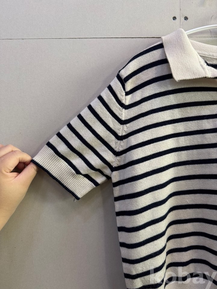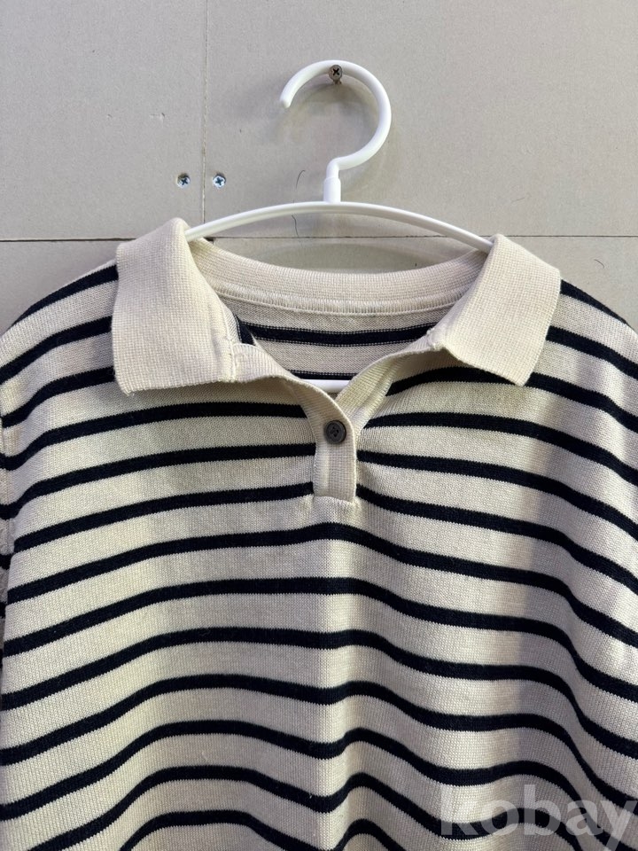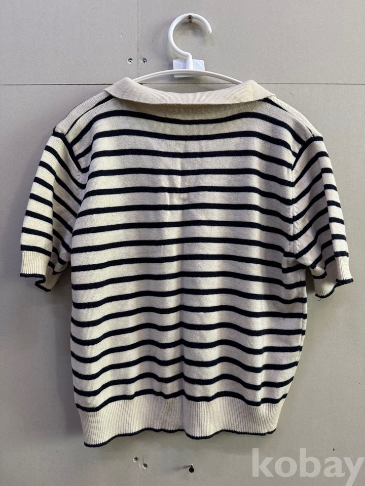 [천원옷장] L-1251 오피스룩으로 좋은 스트라이프 니트 카라 반팔티 44