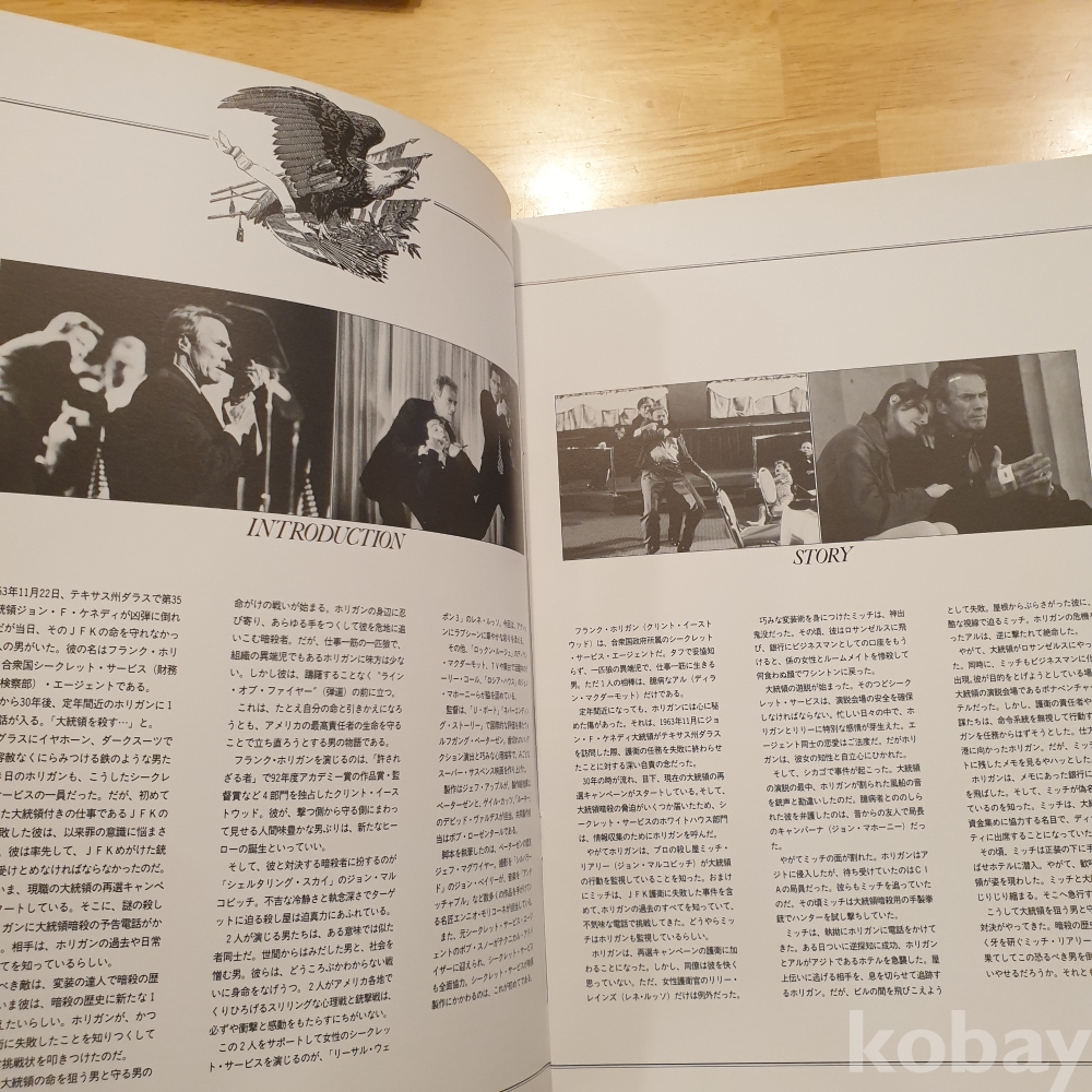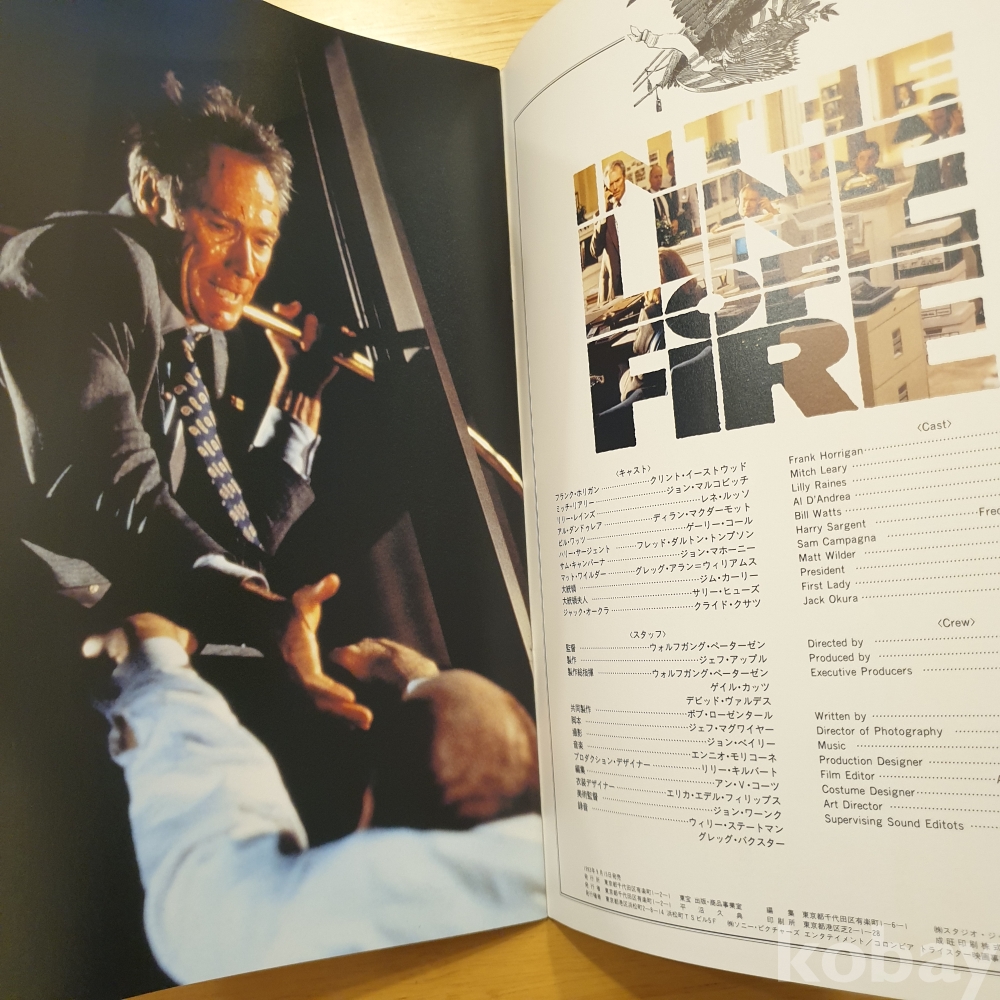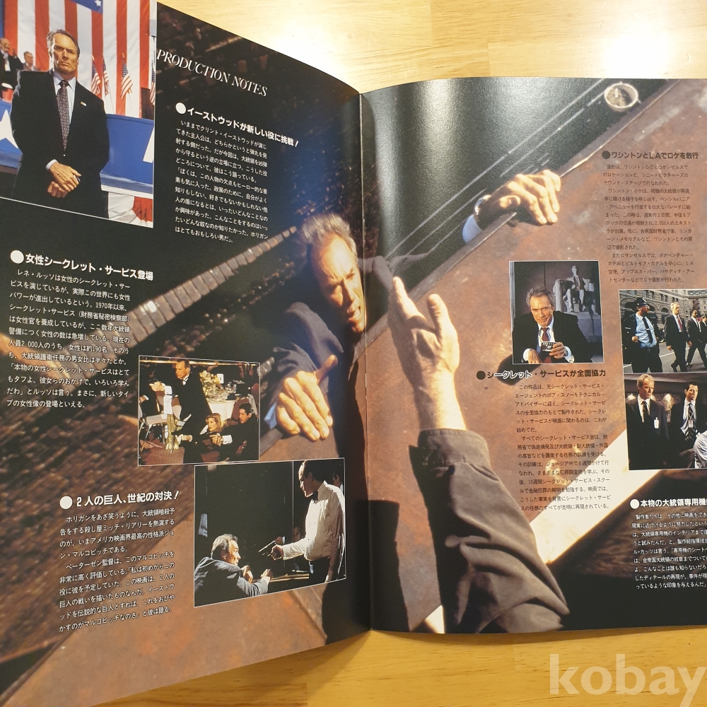 에어포스원 감독인 볼프강 페테르젠 감독, 클린트 이스트우드, 존 말코비치 주연의 1993년 영화 <사선에서> 일본영화팜플렛입니다. 일본에서 상영 당시 유료로 판매했던, 소책자형식의 팜플렛으로 일본어로 영화속 줄거리나 캐릭터, 장면에 대한 소개 등이 담겨있습니다. 사진에 보이는 것처럼 특별한 구김이나 오염은 없습니다. 그러나 미사용품은 아니기에 이로 인한 환불은 불가하며 민감하신 분은 구입 자제 부탁드립니다. 사진 그대로 보내드립니다. 궁금한 점 있으시면 문의주세요.