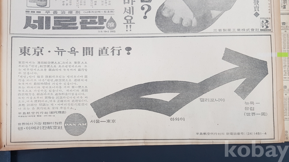 **** 1968.05.07(한국일보)/팬아메리칸 항공사 광고포함/약 8면