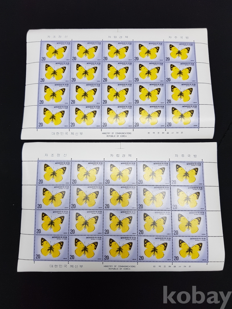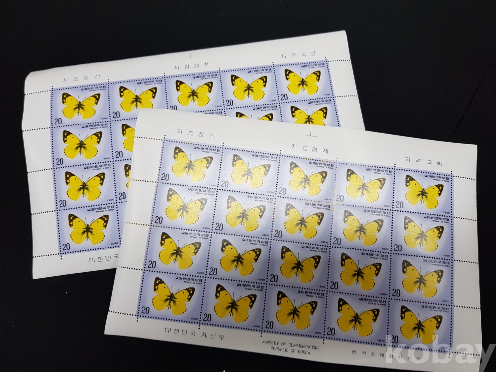 - 미사용 1976년 나비 시리즈 제 3집 노랑나비 전지 2매 일괄