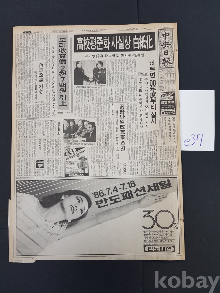 **** 1986.07.02(중앙일보)/동아제약 타치오 광고 등/10면