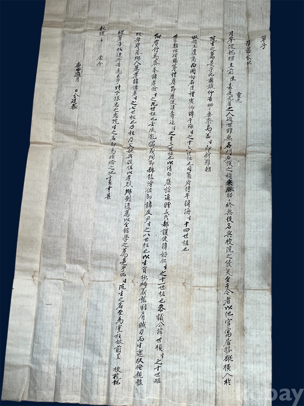 100cm가 넘는 종이에 많은 글이 쓰여있습니다.