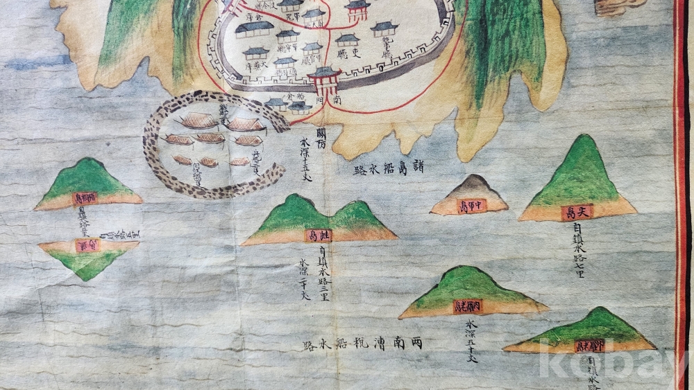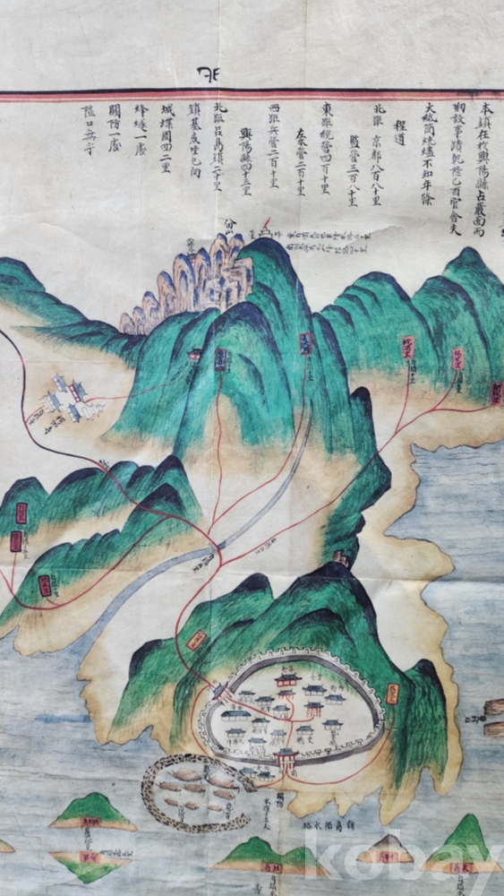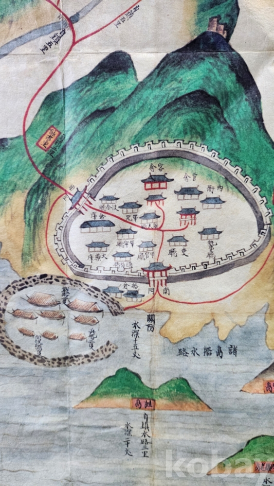 Tㅡ492호 다섯 좌측 번/// 조선시대 지방 지도 중 "흥양 사도진(興陽 蛇渡鎭)"지도로 한정된 복원품으로 매우 희귀품입니다
