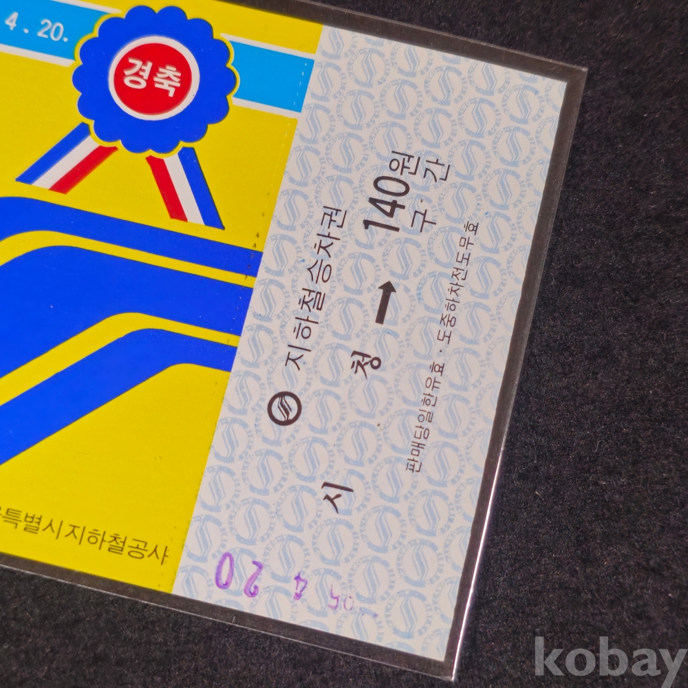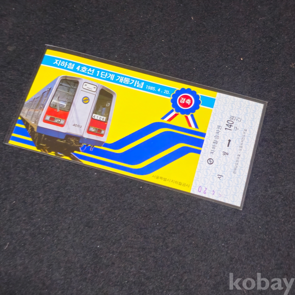(((철도자료/지하철자료))) 1985년 지하철 4호선 1단계 개통기념 승차권 (시청-140원구간)(서울특별시지하철공사) (미사용)