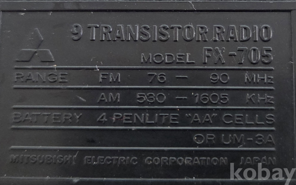 품 명 | 동작하는 희귀 미쓰비시 9TR 트랜지스터 라디오 ***FX-705***(극희귀 모델) |