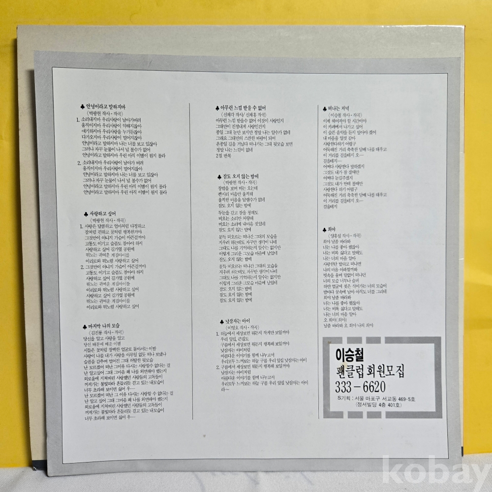| 자켓상태 | EX : 약간의 마모, 모서리 찢김 존재 | 음반상태 | EX : 재생에 영향 없는 가벼운 기스 존재 | 발매정보 | 초반 | 가사지여부 | 유 |