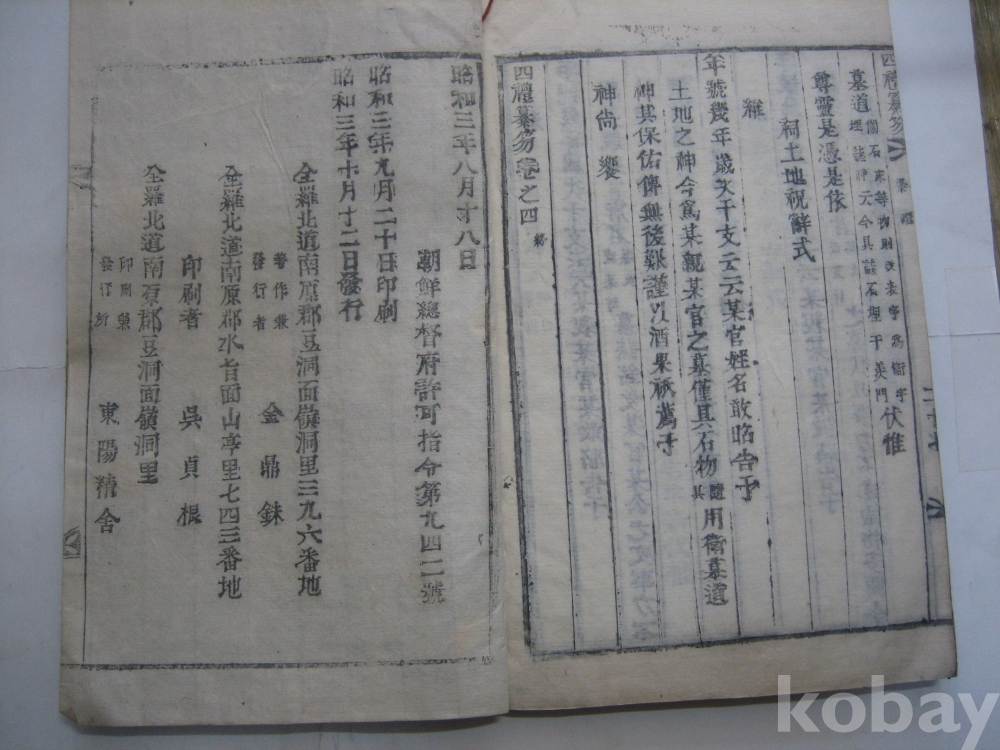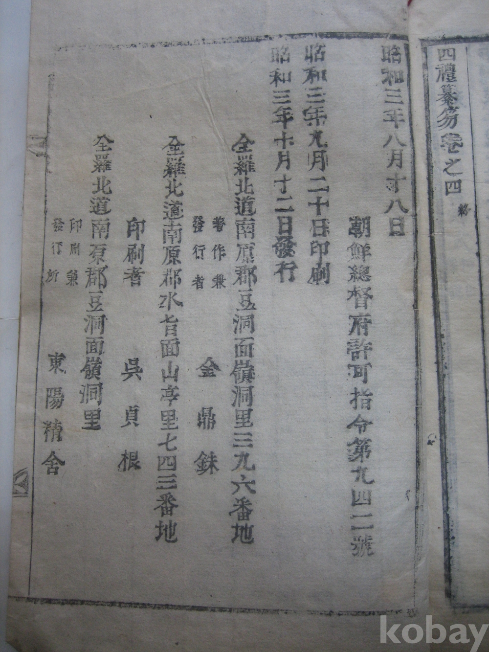 8. 내용 : 일제 강점기에 전라도 남원군(南原郡)에서 발행한 사례 즉 전통적인 관혼상제에 관한 고서입니다.