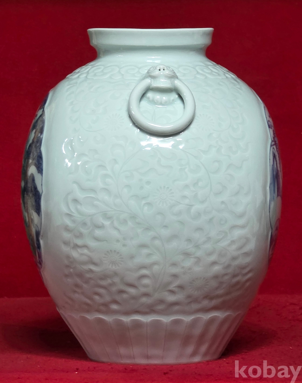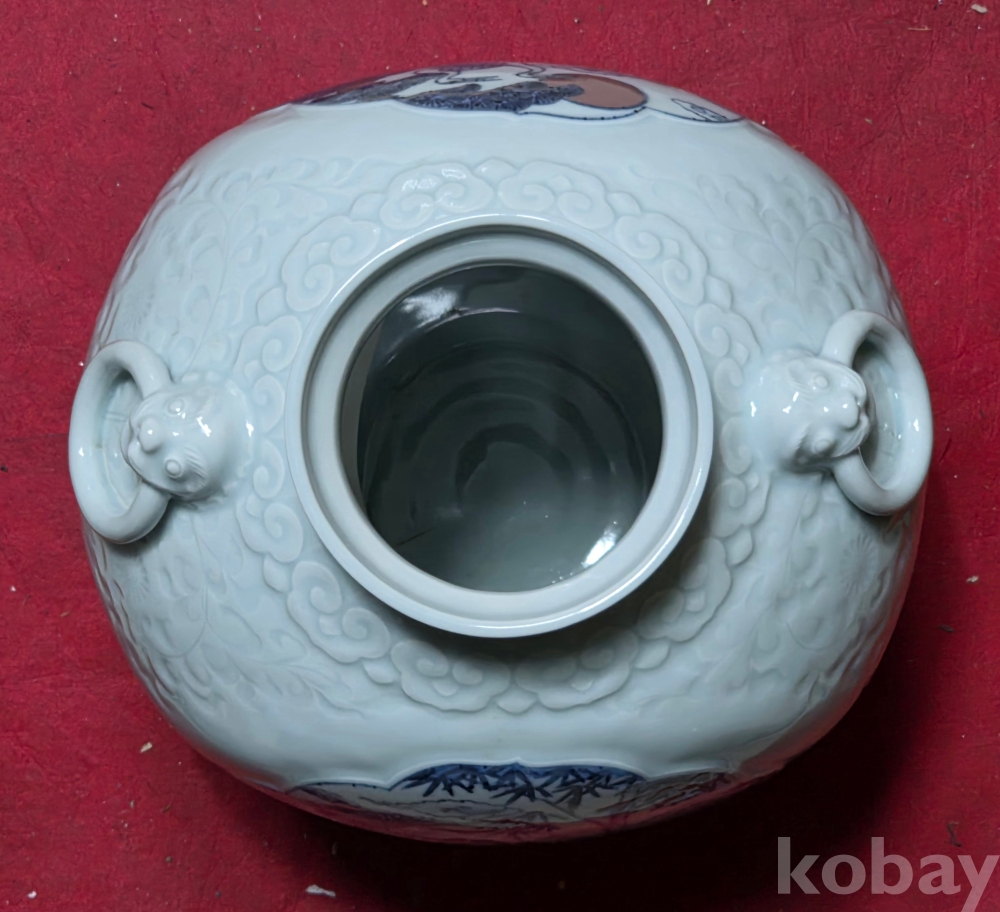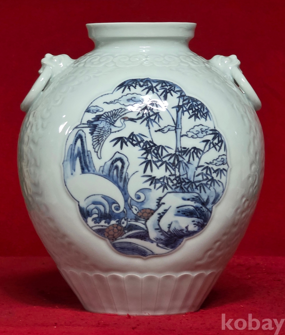 인간문화재 호산 안동오 선생님의 청화백자 철화 진사채 십장생 양이오 편병 대형 입니다