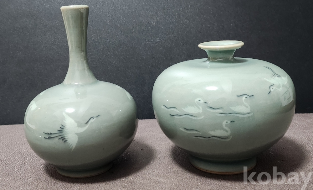 청자상감운학문 靑磁象嵌雲鶴紋 < 2점 세트 作 >
